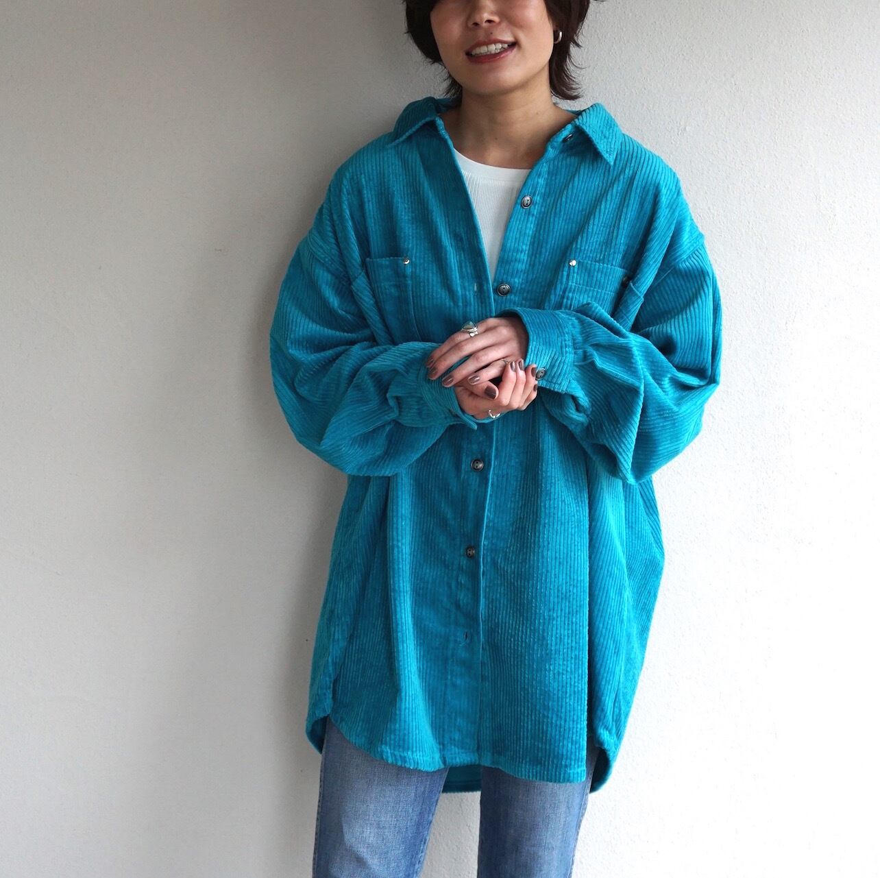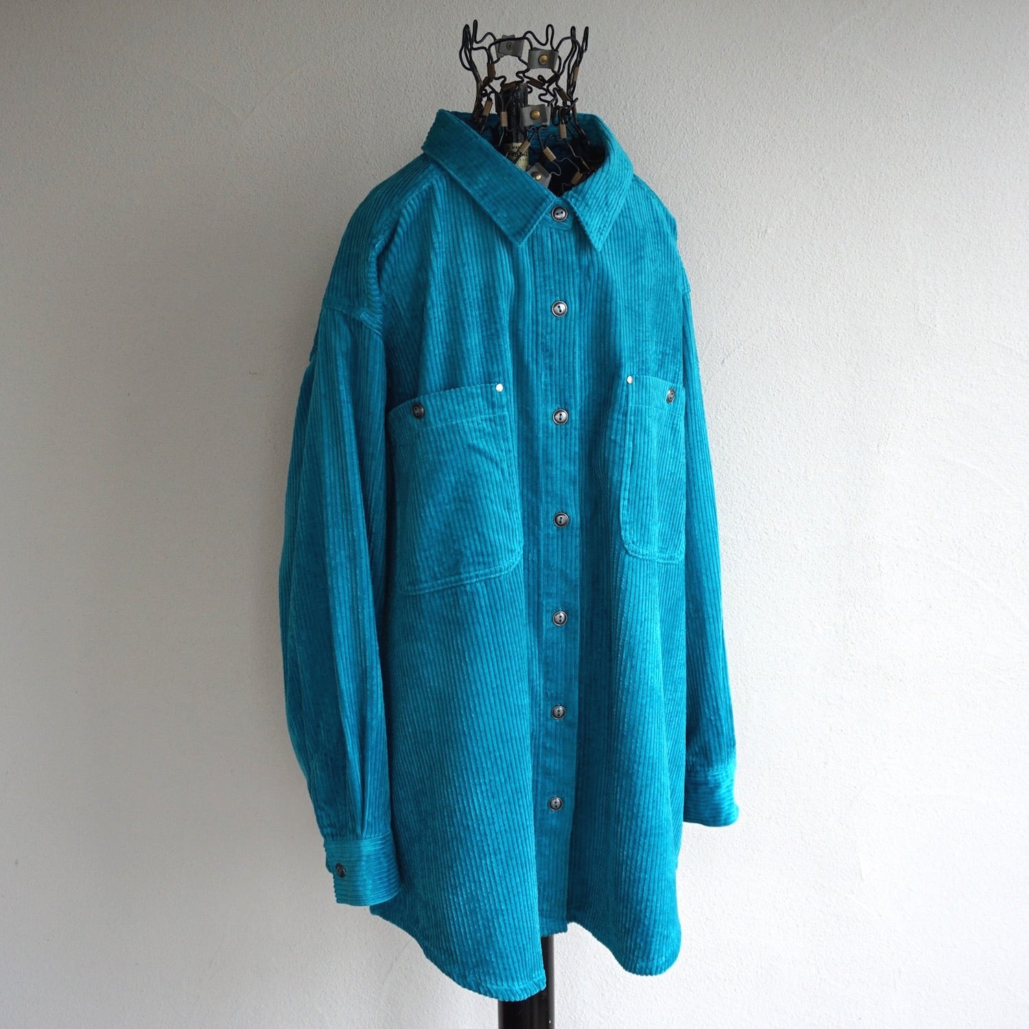 [Roaman’s] 太畝 コーデュロイシャツ ターコイズ 表記(women's 1X)