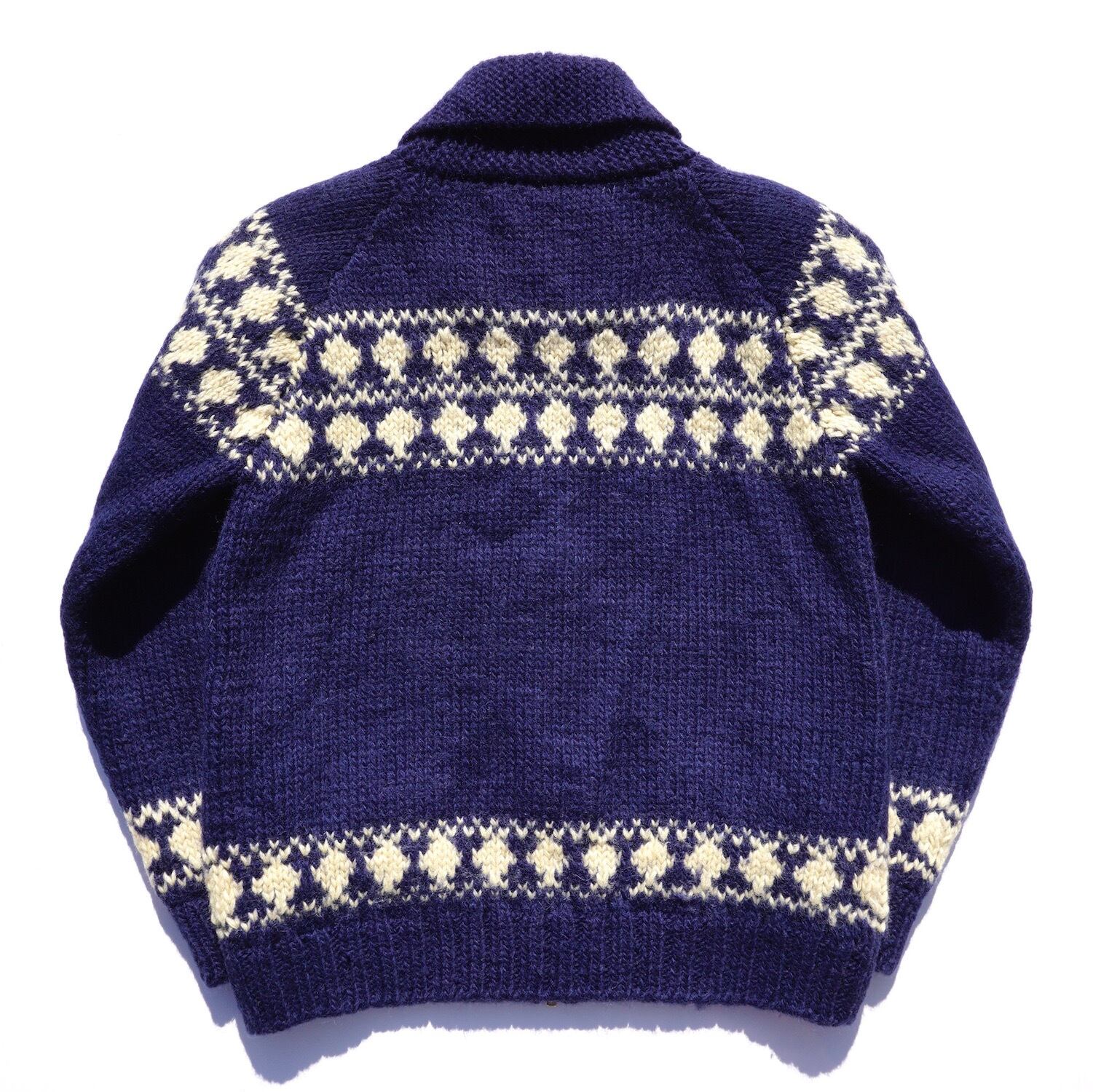 1970’s ダイヤ柄 カウチンセーター TALONジッパー ネイビー×オフホワイト 実寸(S程度) ヴィンテージ
