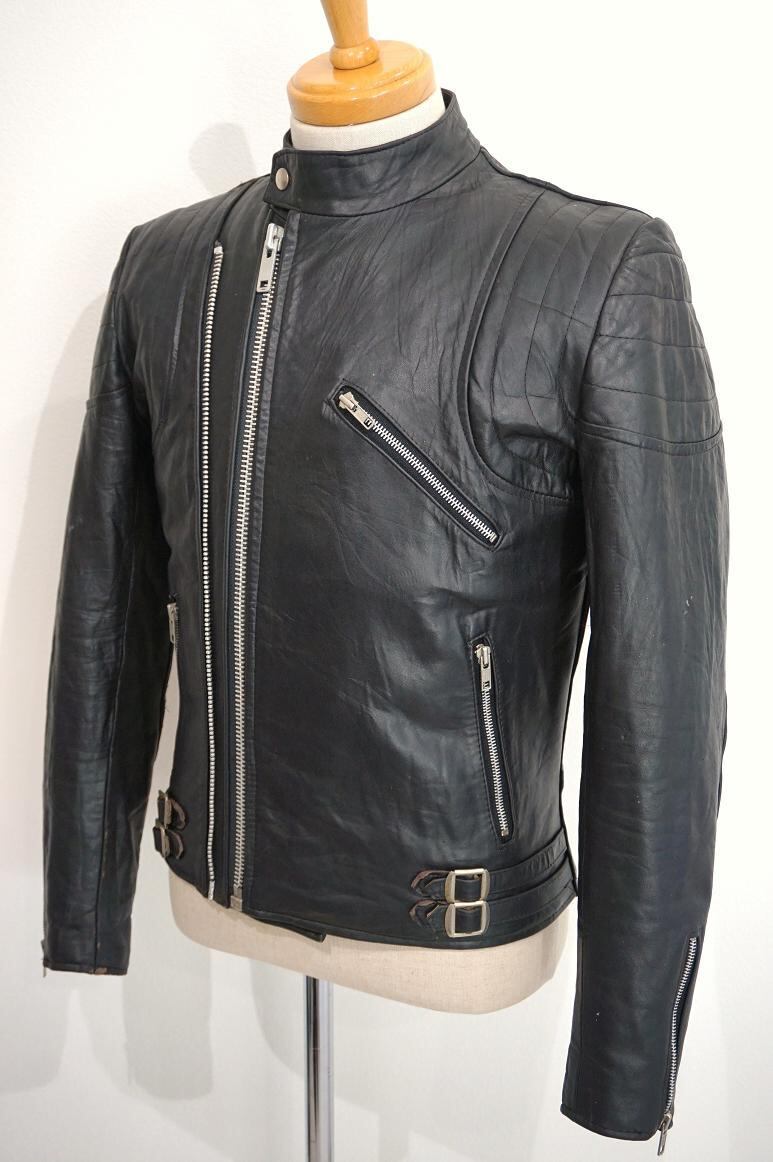 1980’s ENGLAND製 ツイントラック&シングルブレスト ライダースジャケット ブラック 表記(36)