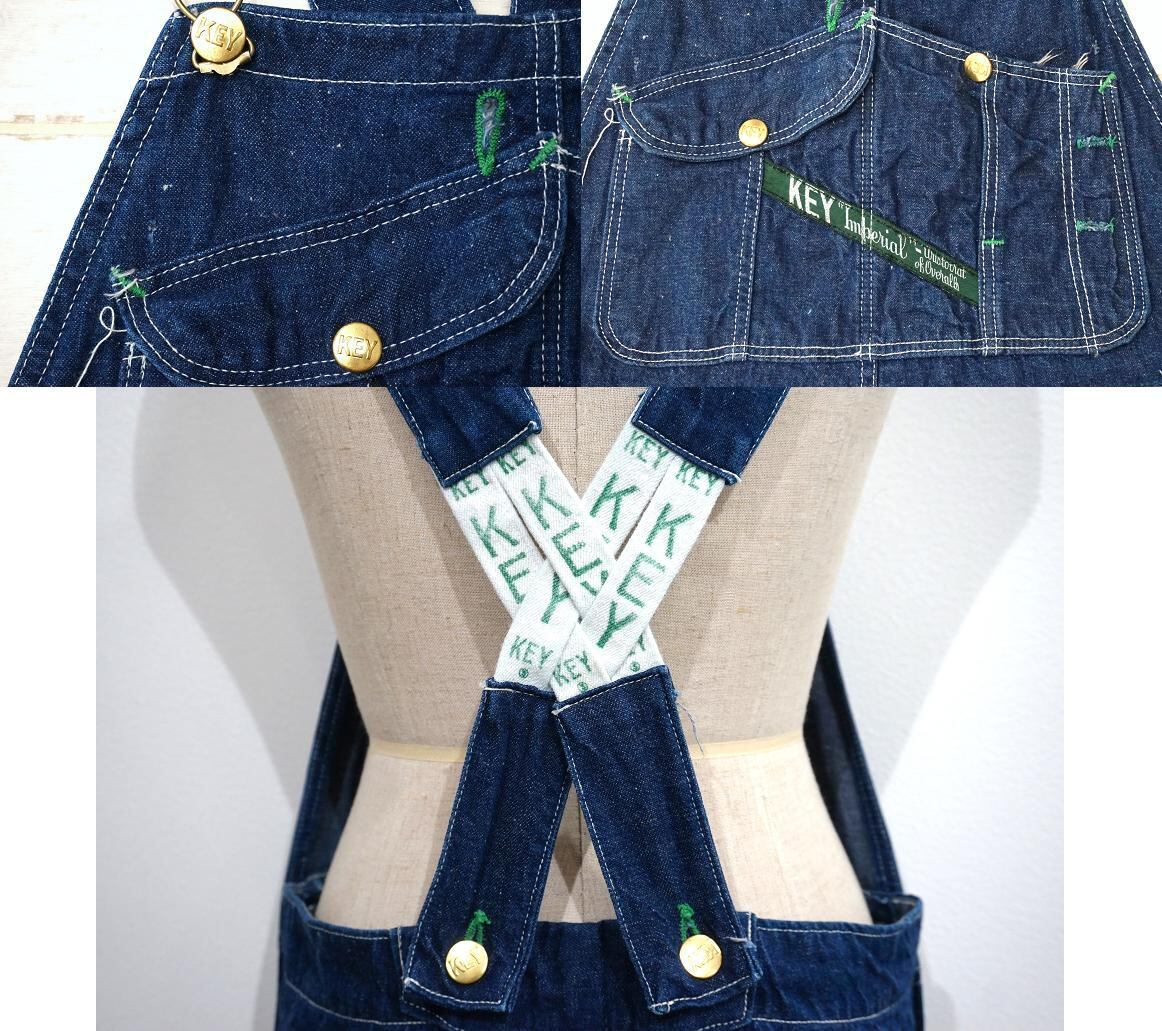 1960’s KEY ローバックスタイルデニムオーバーオール 濃紺 実寸(W34位)