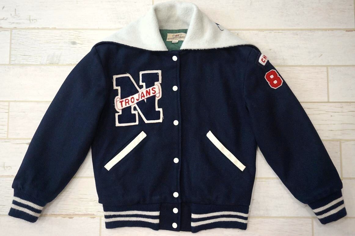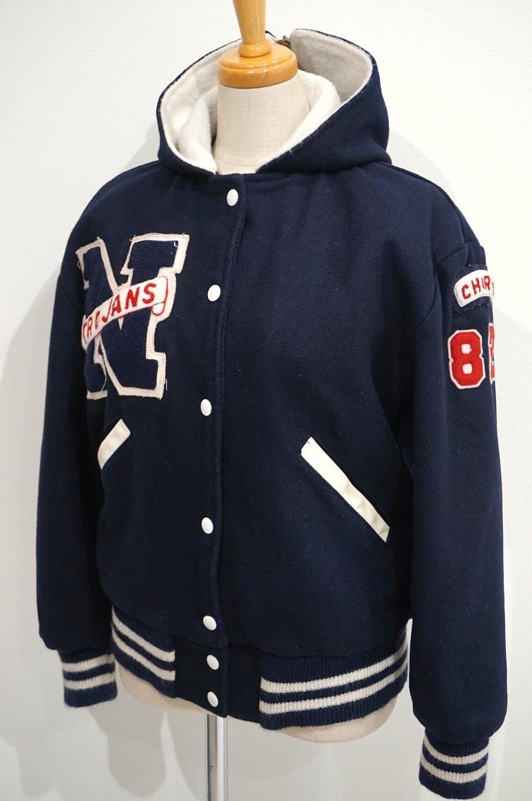 1960’s THE STANDARD PENNANT フード付スタジャン ダークネイビー×ホワイト 実寸(WMS M〜L位)