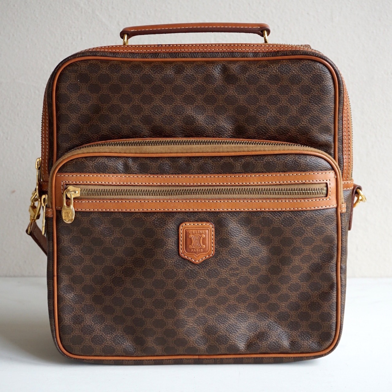 1980’s ITALY製 [CELINE] マカダム柄PVC×レザー 2way ショルダーバッグ H30cm×W26.5cm×D10cm ヴィンテージ オールドセリーヌ ブラゾン レア