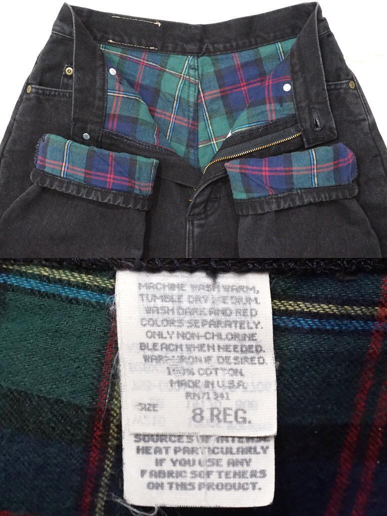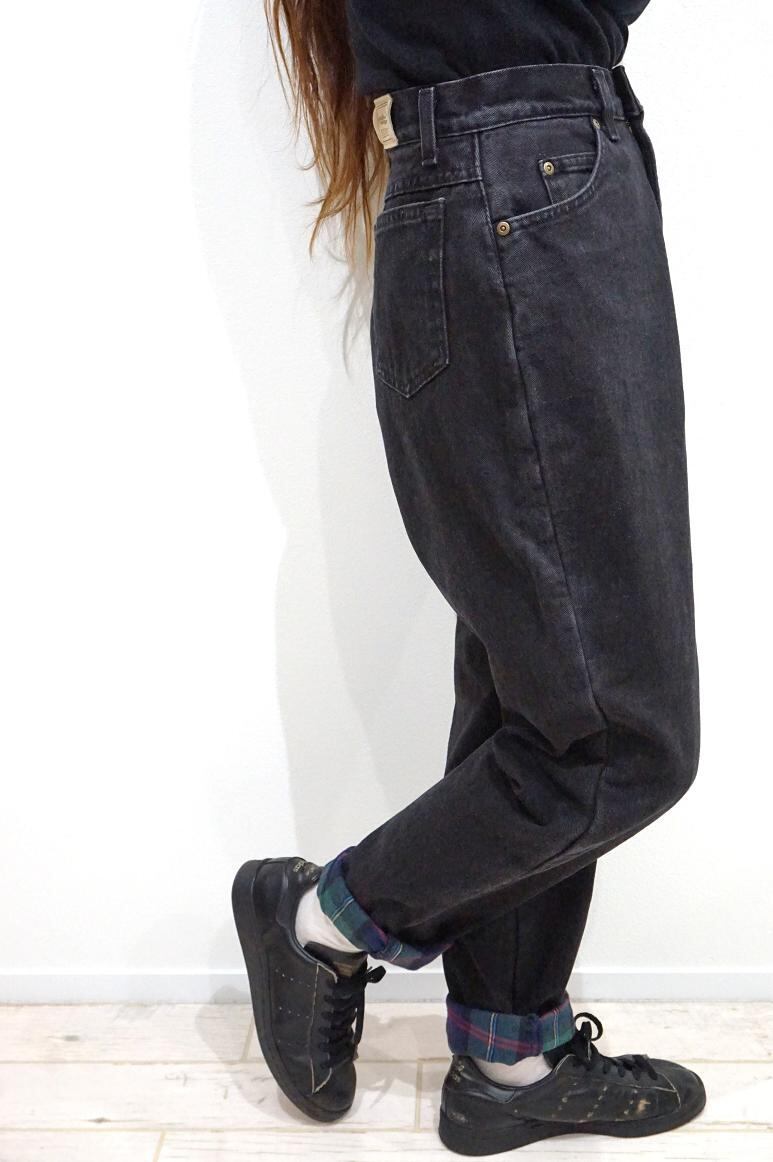 1980’s L.L.Bean チェック柄フランネルライナー付 ハイウエストテーパードブラックジーンズ 実寸(W27位)
