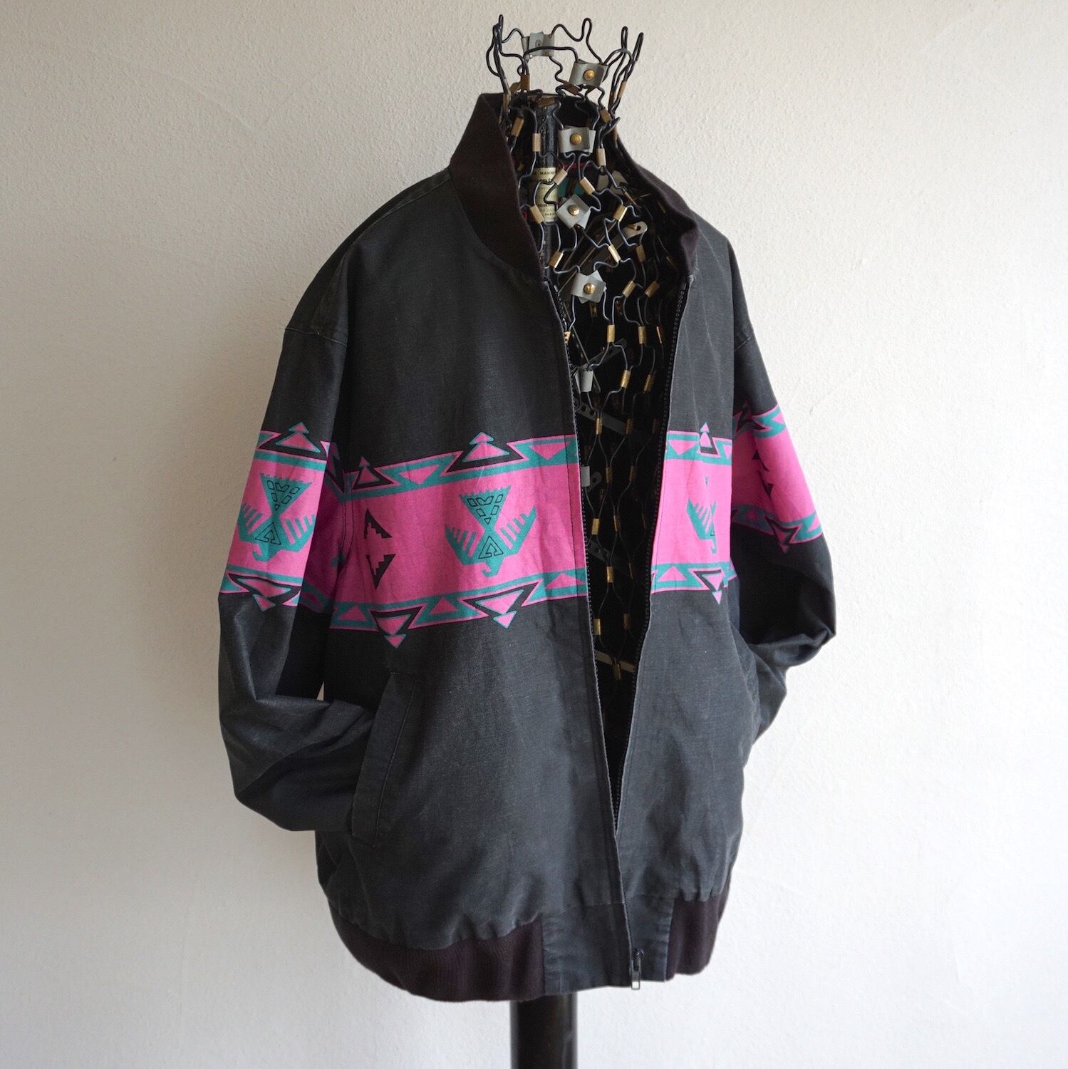 1990’s [Wrangler] "BRUSHPOPPER" サンダーバード ネイティヴボーダープリント コットンウエスタンジャケット ブラック×ピンク 実寸(L程度) ラングラー ヴィンテージ