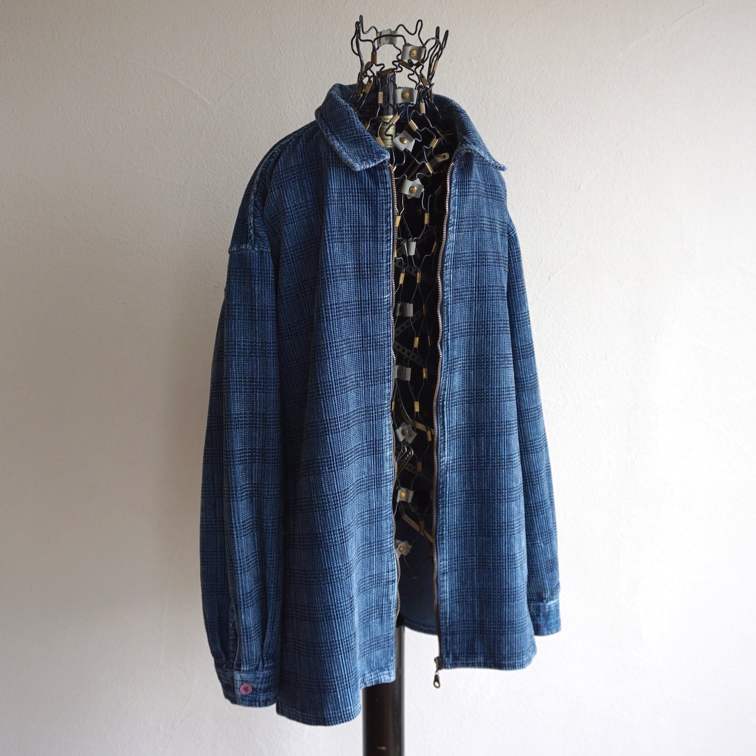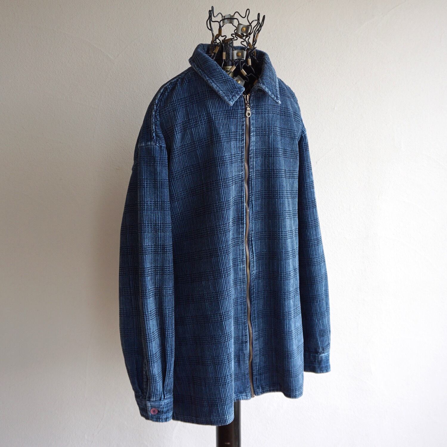 1990’s [CECIL] ジップアップ コーデュロイシャツ ブルー×ブラック チェック 表記(XL)