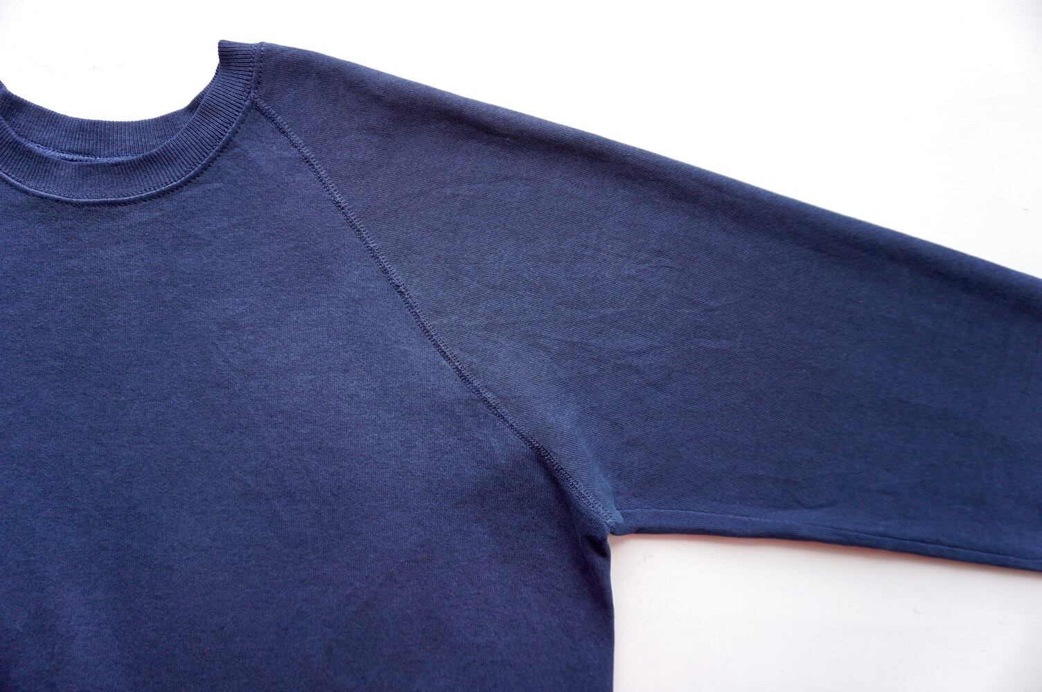シンプルな無地ネイビーのラグランスリーブスウェット。