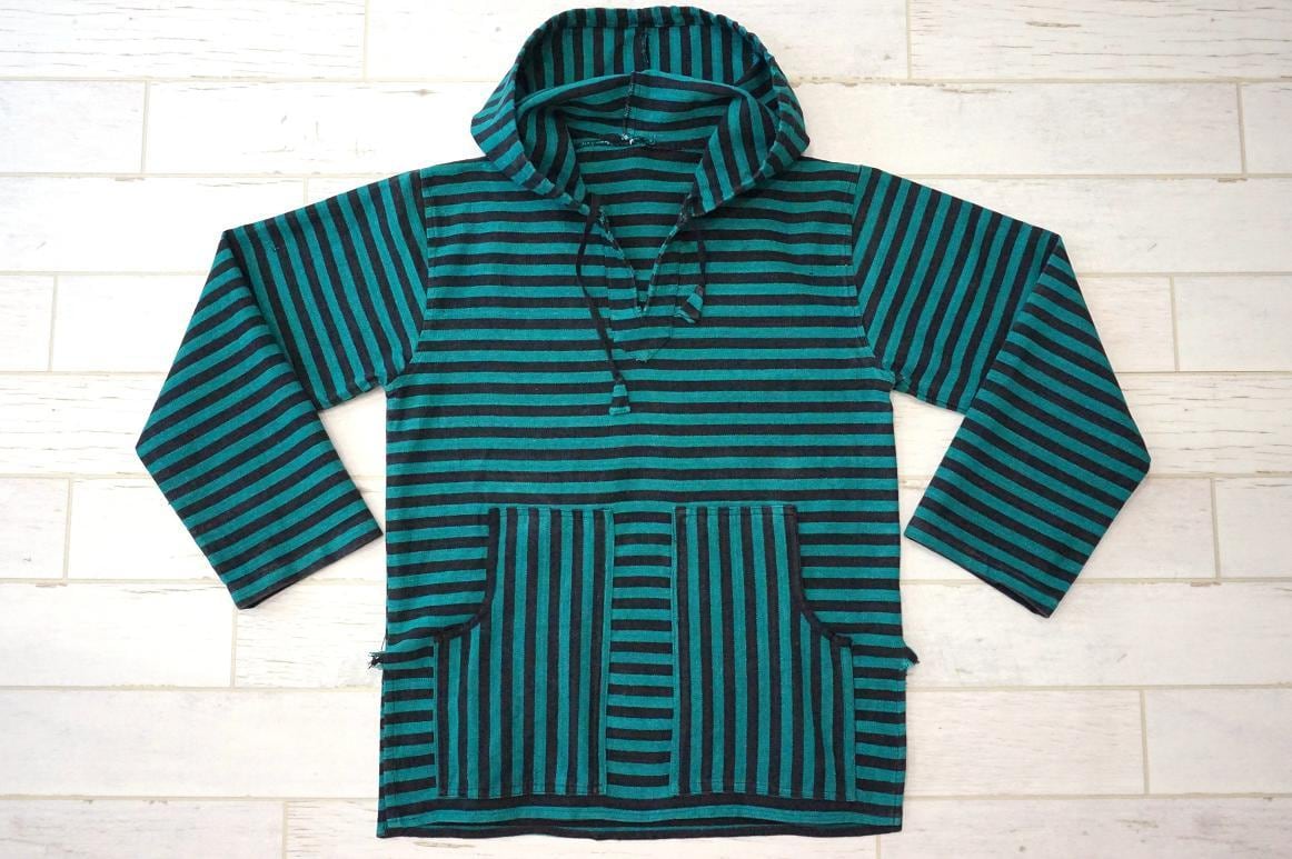 1990’s メキシカンパーカ調コットンボーダーパーカ 緑×黒 実寸(L位)