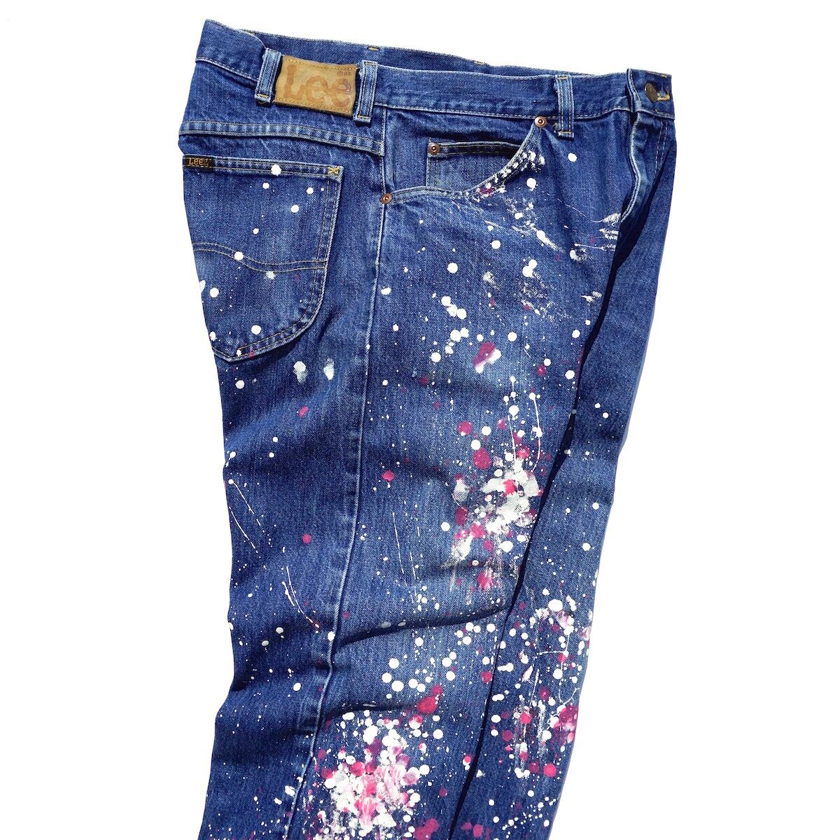 1980’s USA製 [Lee] 200 ストレートジーンズ ブルー×ペイント 実寸(W32〜33程度) リー ヴィンテージ