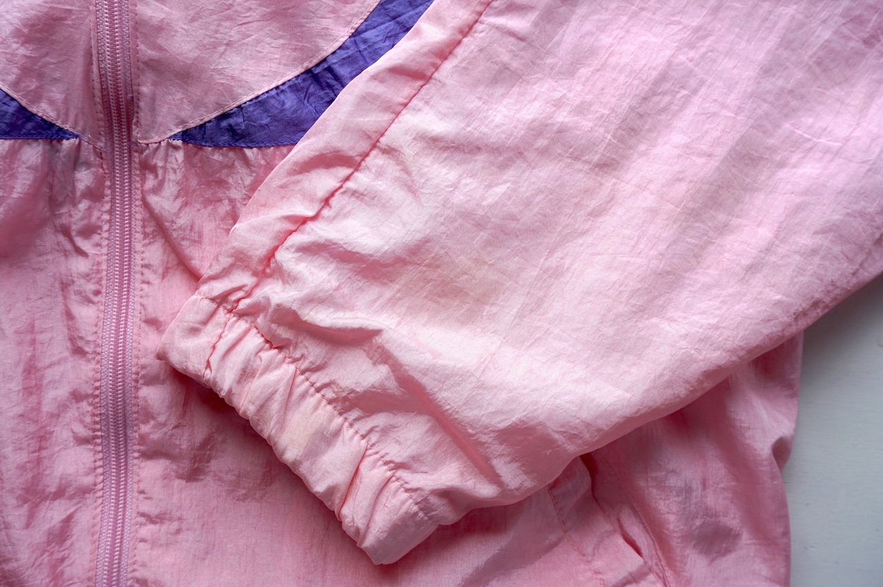 80’s〜90’s初頭らしいパステル配色・パターンが可愛い、ジップアップナイロンジャケット。