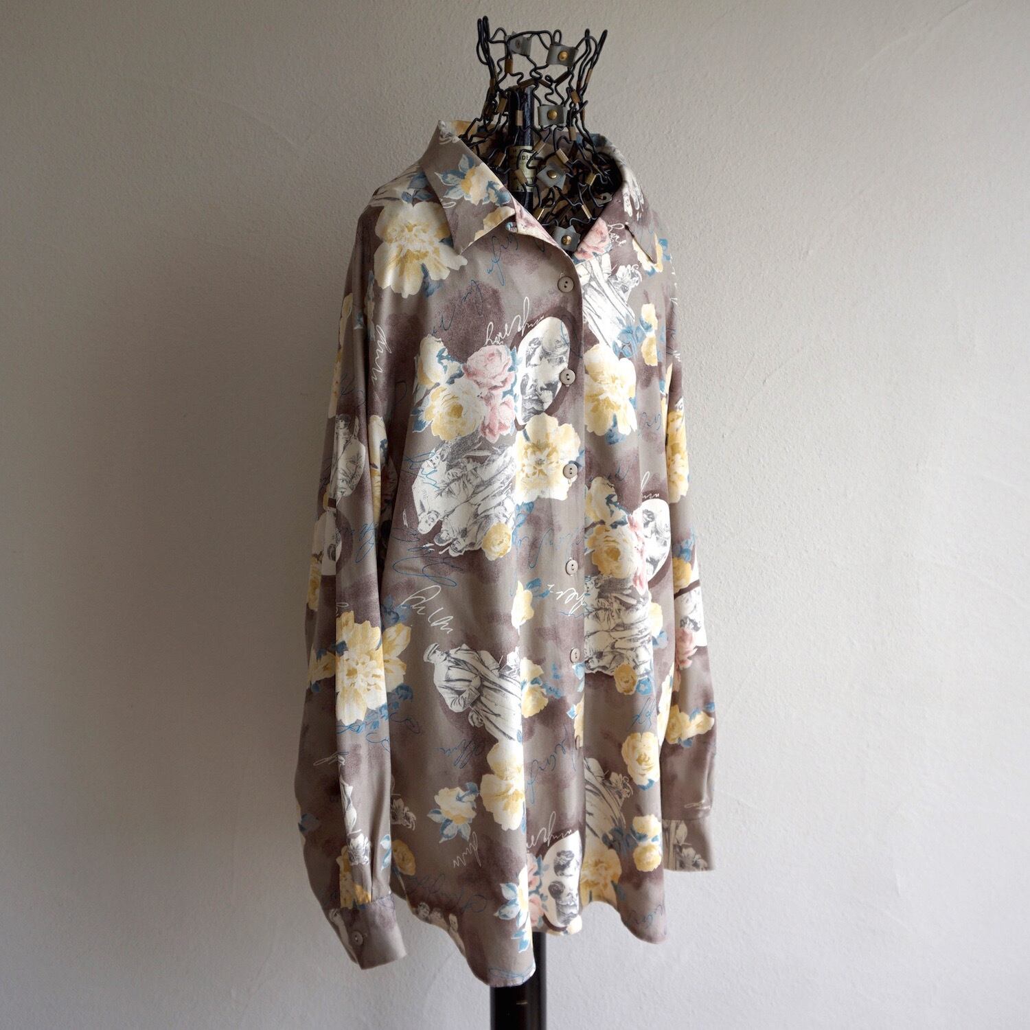 1990’s ENGLAND製 [Martinelli] ループカラー 総柄レーヨンシャツ ブラウン系 表記(women's XL程度) ヴィンテージ