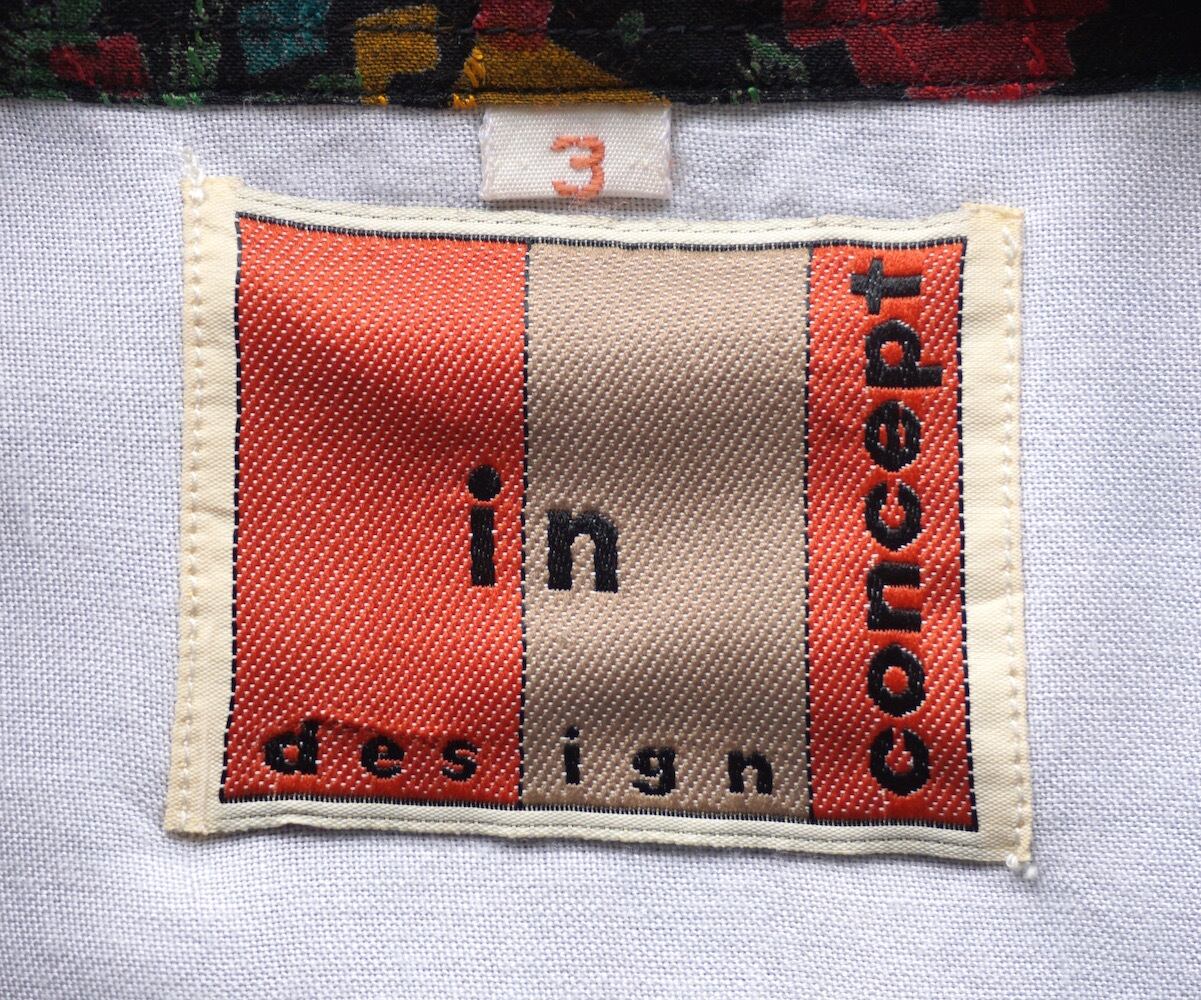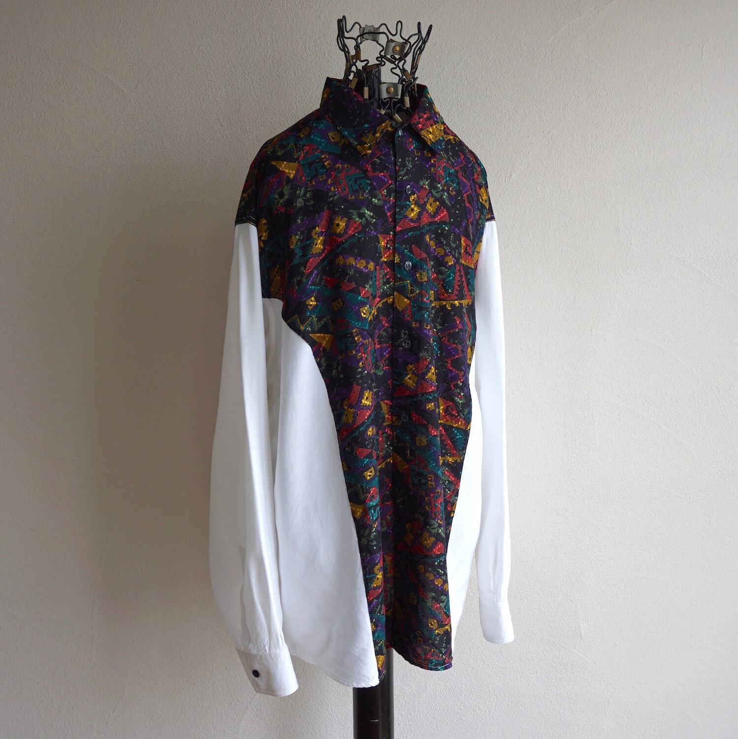 1980’s [in design concept] 切替 L/S ポリ/レーヨンシャツ ブラック柄×ホワイト 実寸(L程度) ヴィンテージ