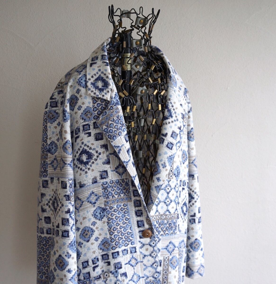 1990’s USA製 [ALICE STUART] 1ボタン テーラードジャケット リネン系 ホワイト×ブルー 実寸(women's L程度) ヴィンテージ