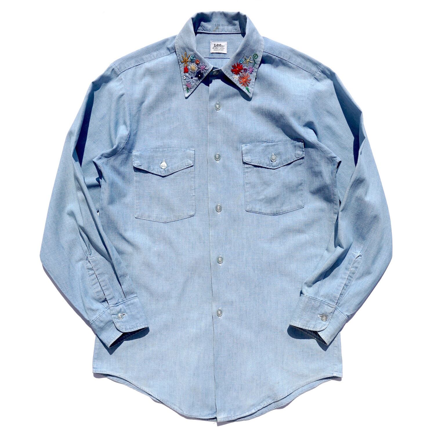 1970’s USA製 [Lee] 襟刺繍 シャンブレーシャツ 耳付き 実寸(S程度) リー ヴィンテージ