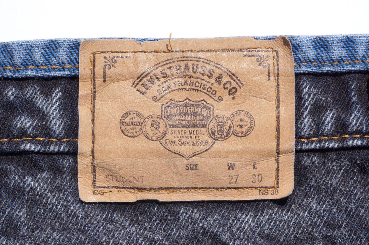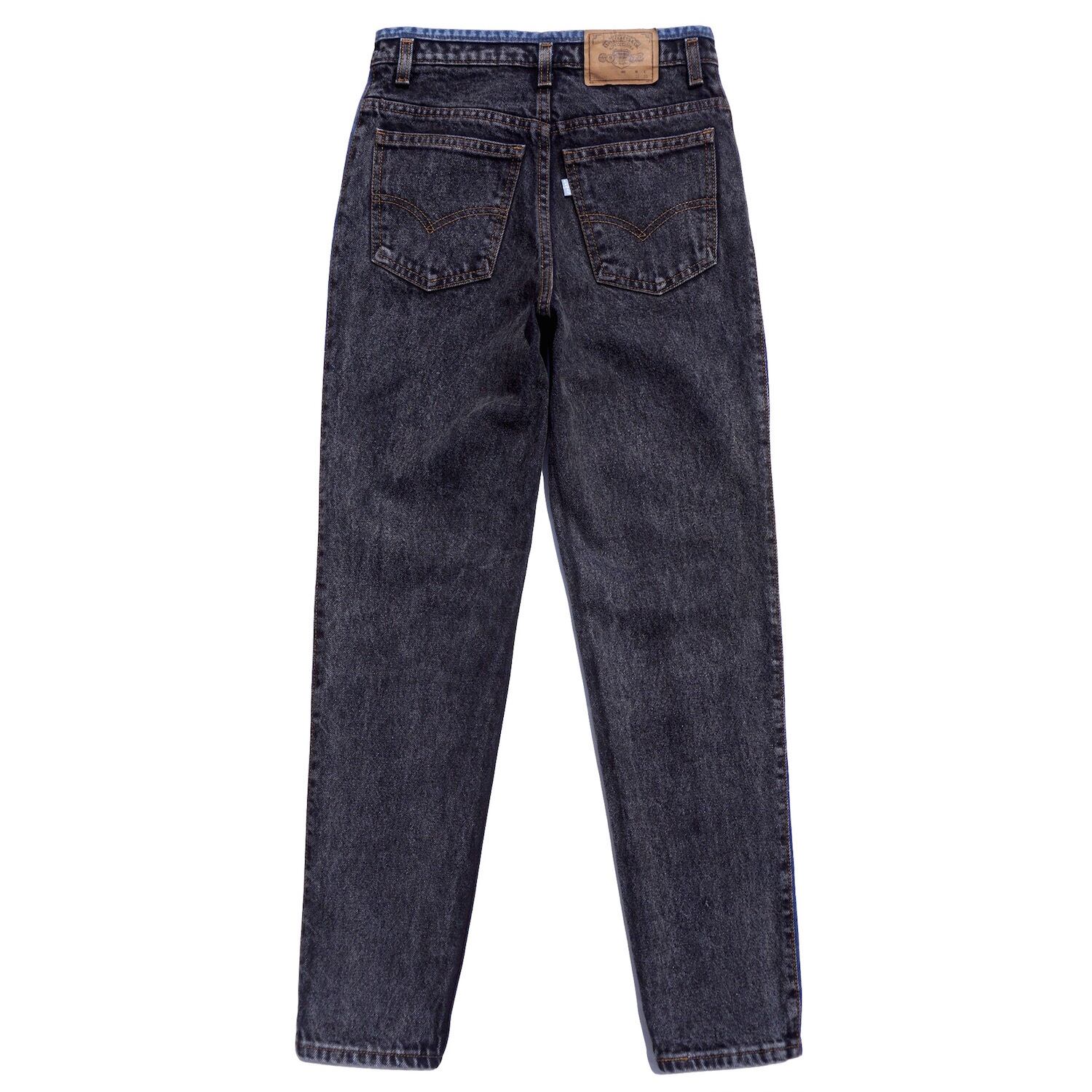 1980’s USA製 [Levi’s] 512 スリムテーパードジーンズ ウエスト&サイドライン バイカラー ブラック×ブルー 表記(W27) リーバイス ヴィンテージ