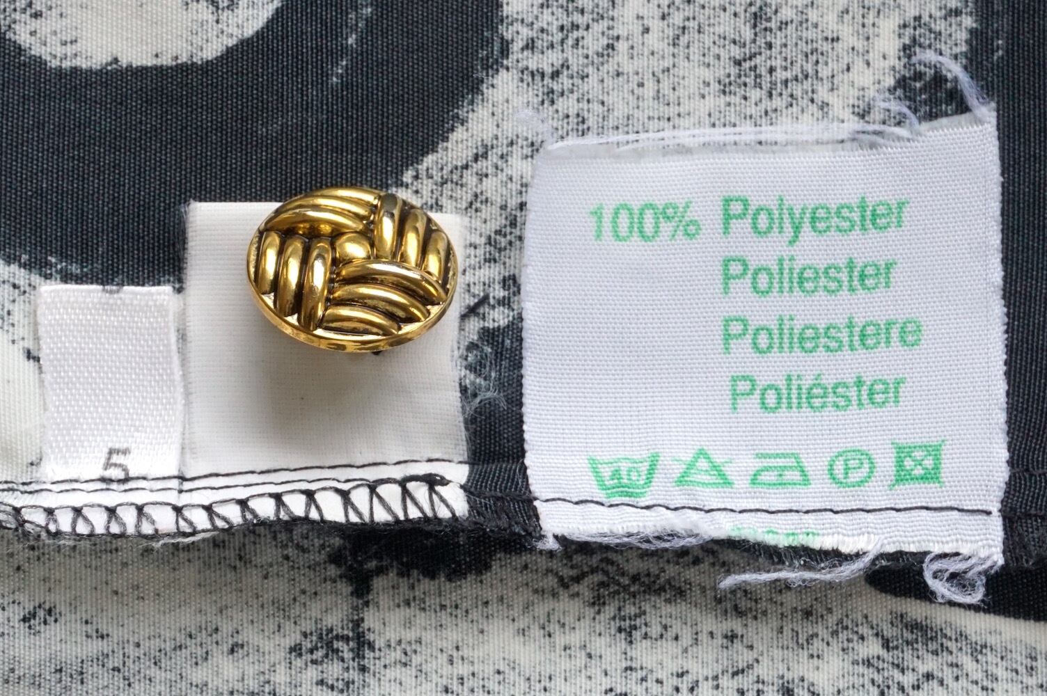 1980’s ポリエステルブラウス 肩プリーツ ビッグシルエット ホワイト×ブラック モノトーン 実寸(women's XL程度) ヴィンテージ
