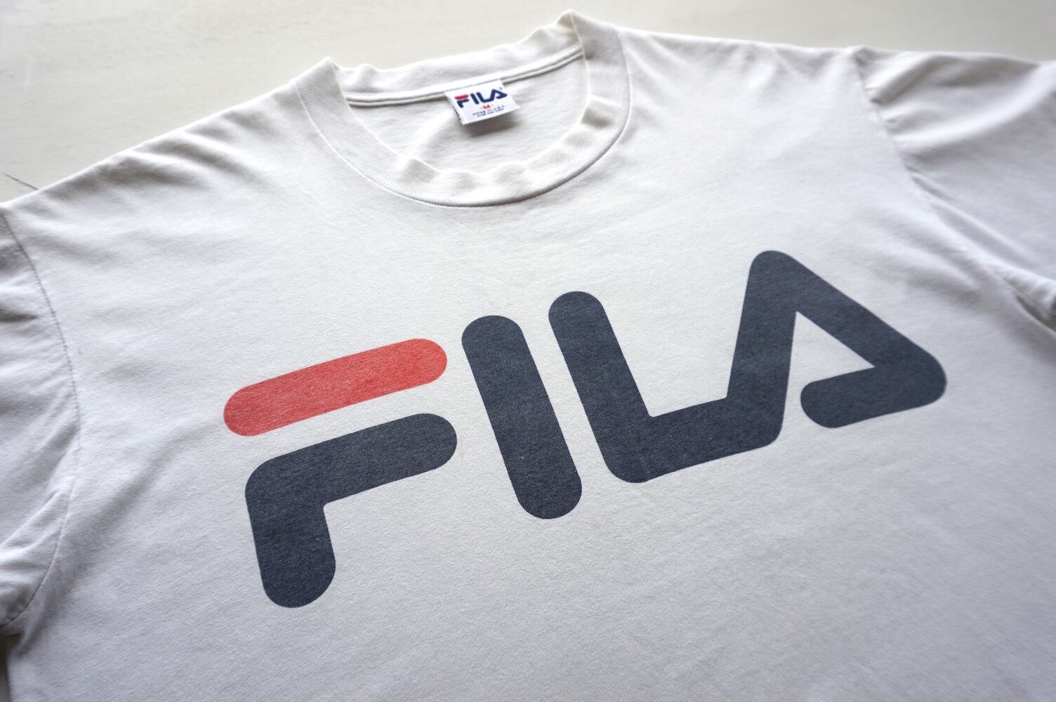 シンプルな、"FILA"ロゴプリントTシャツ。