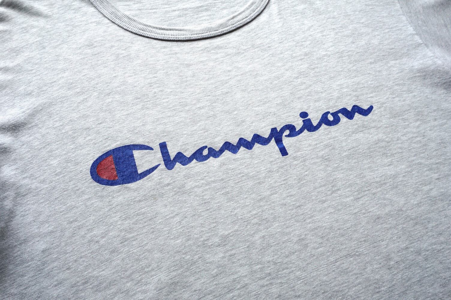 シンプルな、"Champion"スクリプトロゴプリントTシャツ。