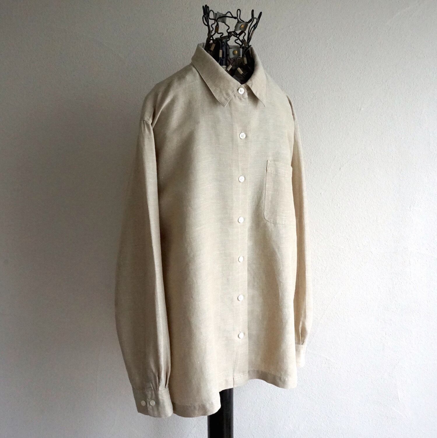 1990’s [G.H.BASS & CO.] リネン×コットン L/Sシャツ ベージュ 表記(women's M) ジョージヘンリーバス