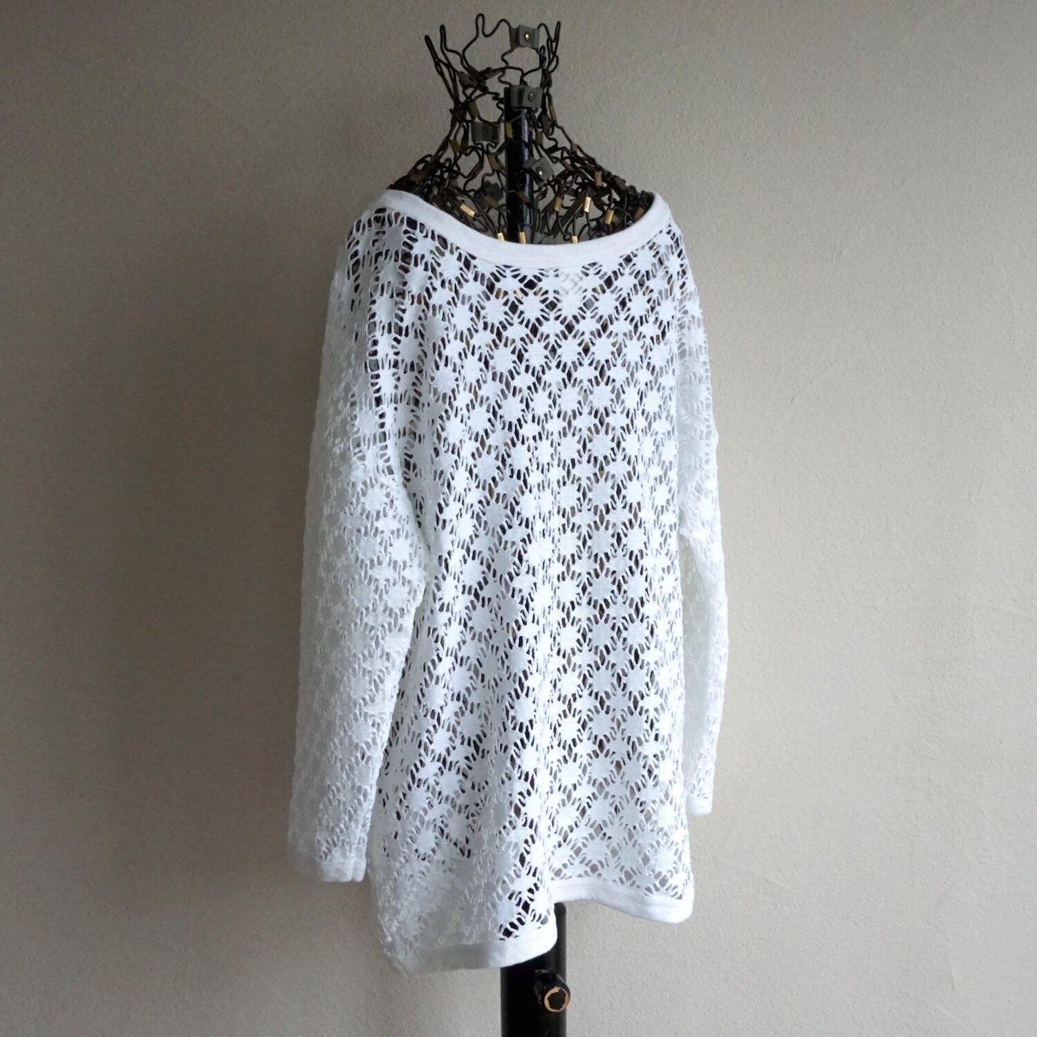 1980’s〜90’s USA製 [European Club] レース調 コットンメッシュカットソー ホワイト 表記(women's M) ヴィンテージ