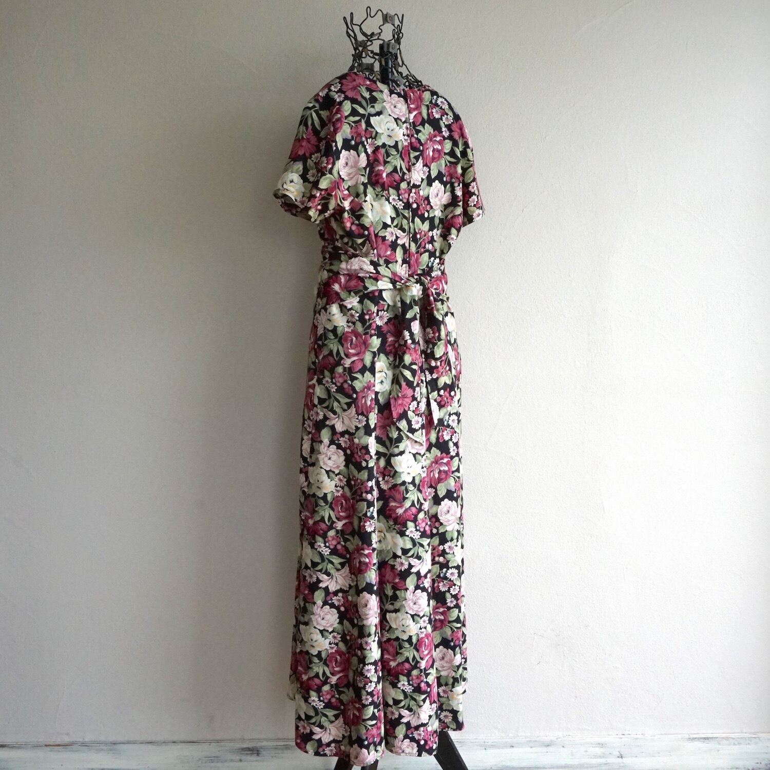 1990’s USA製 [CITY TRIANGLES] フローラルパターン S/S ロングドレス 100%レーヨン 表記(women's US9) ヴィンテージ 花柄 ワンピース