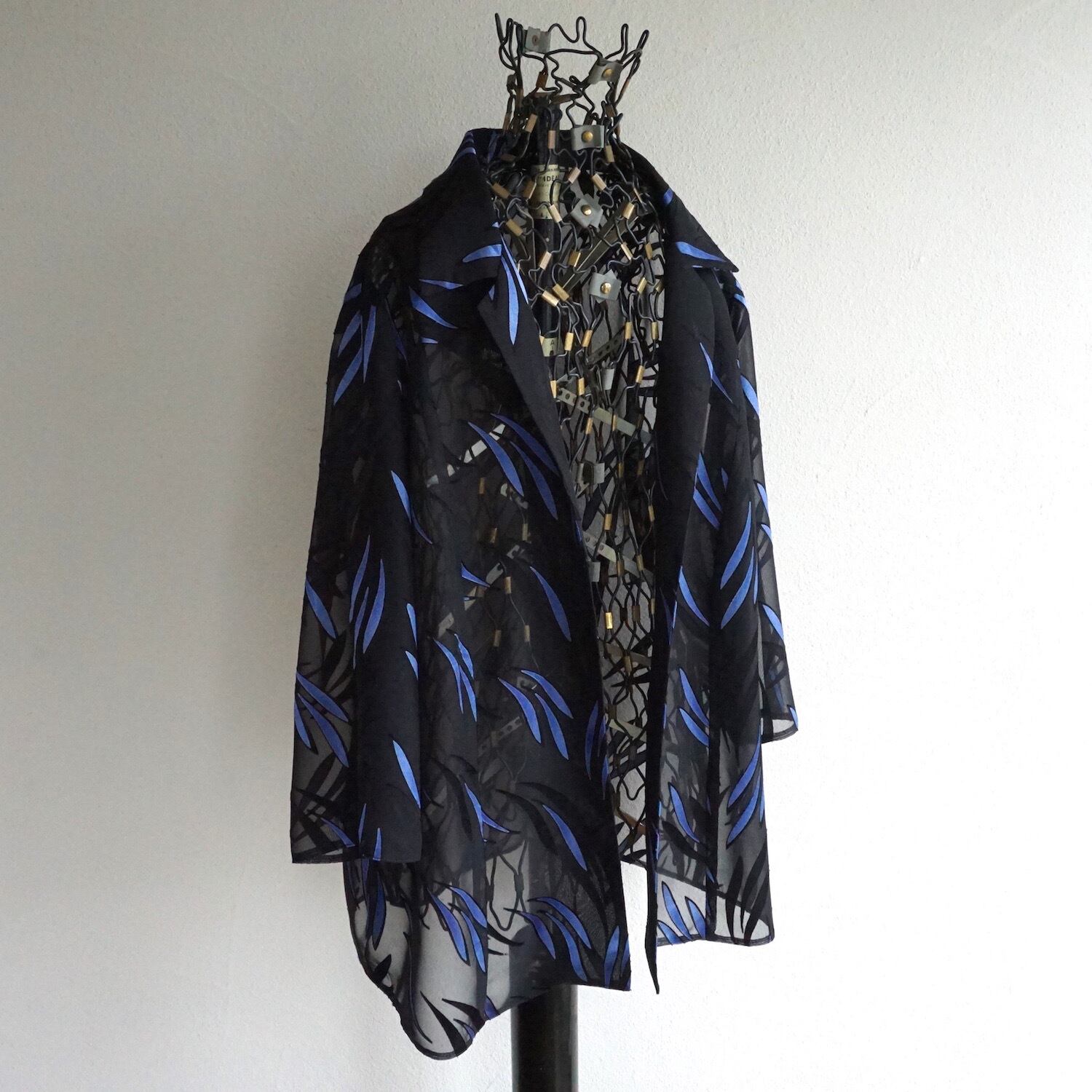 光沢感と透け感のコントラストが美しい、ボタニカルパターンのシアージャケット。