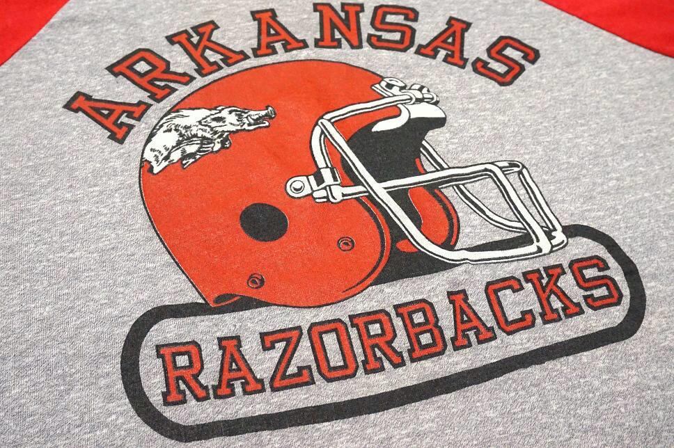 1980’s LOGO 7 "ARKANSAS RAZORBACKS" ラグランTシャツ 杢グレー×赤 表記(L)