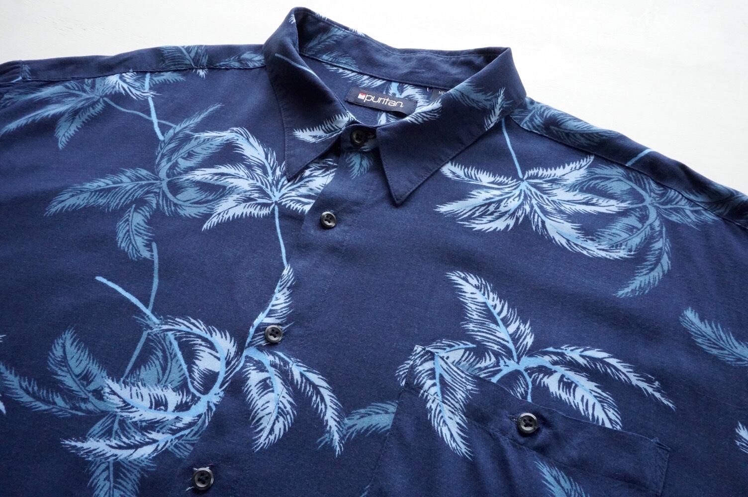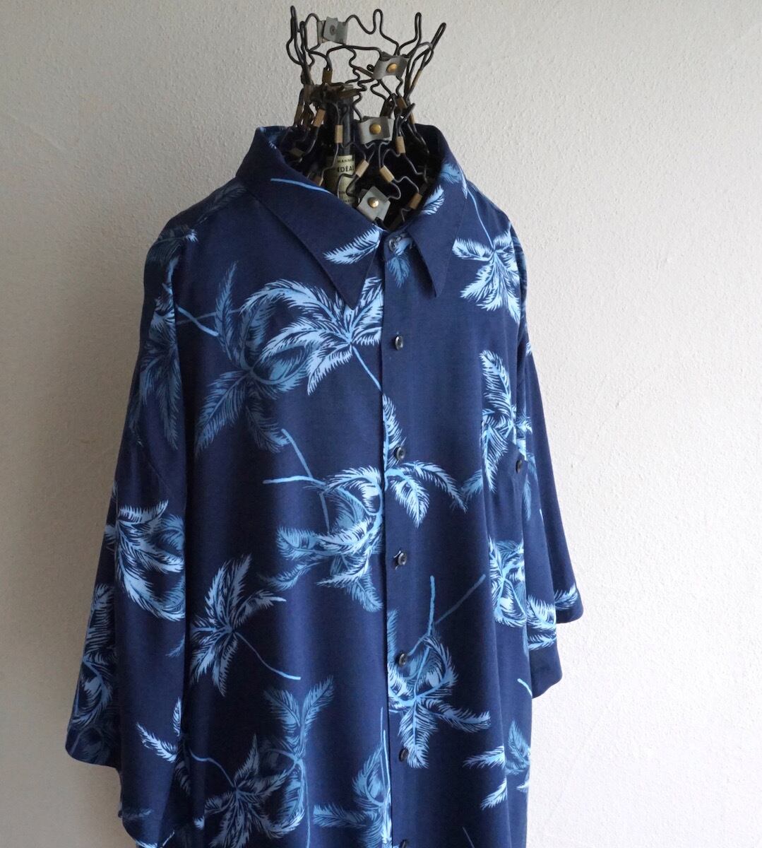 1990’s [puritan] ボタニカルパターン S/S レーヨンシャツ ネイビー 表記(3XL)