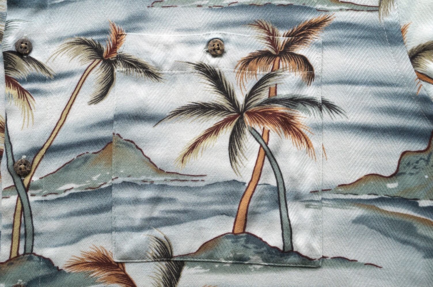 色味の良いリゾート柄のS/Sレーヨンシャツ。