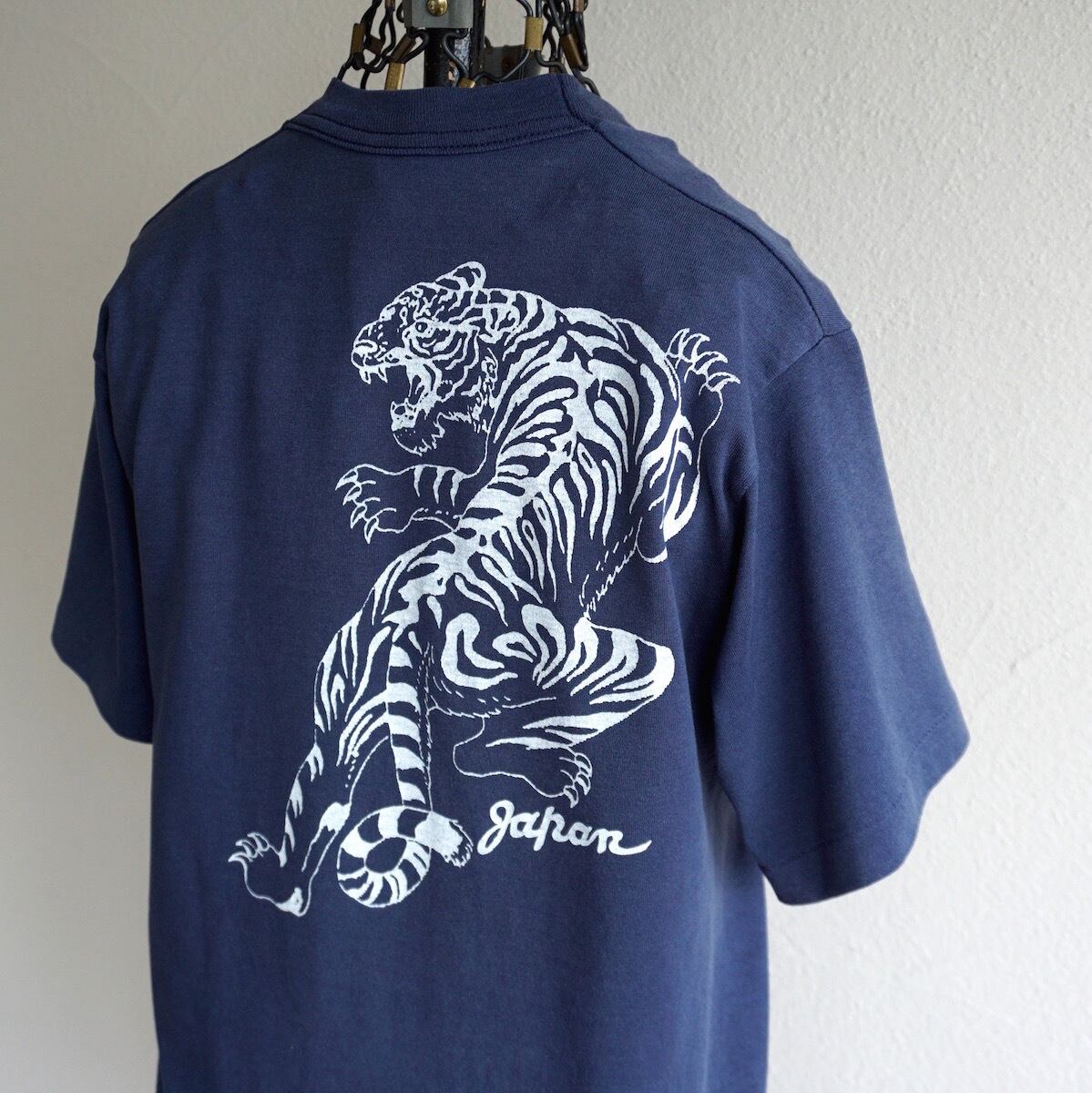 1990’s USA製 [FRUIT OF THE LOOM] 虎 漢字 Japan プリントTシャツ ネイビー 表記(S) 和柄 ヴィンテージ