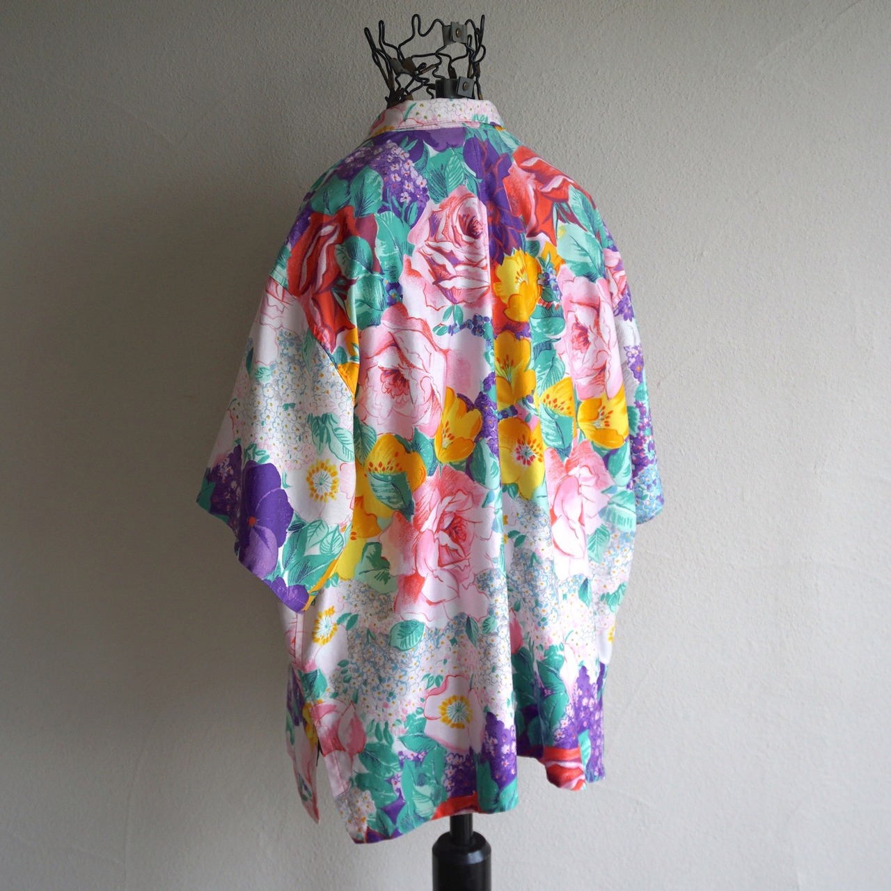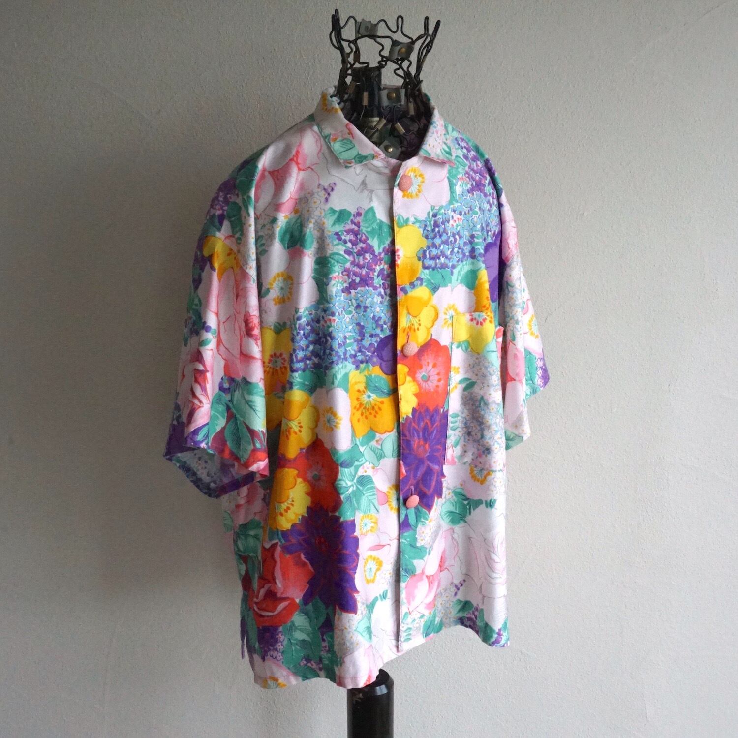 1980’s USA製 [gene ewing] ビッグシルエット S/S コットンシャツ フローラルパターン 表記(women's S) 花柄 ヴィンテージ