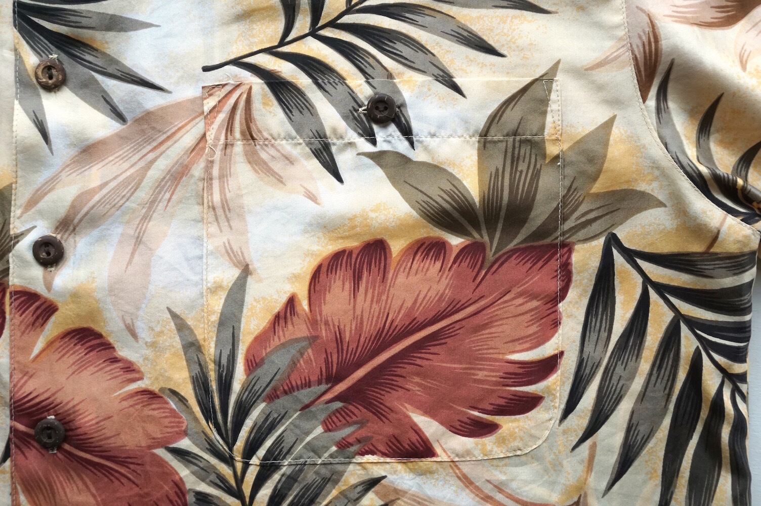 2000’s [Silk Traders] ボタニカルパターン S/S シルクシャツ ベージュ×ブラウン系 表記(M) アロハ ハワイアン