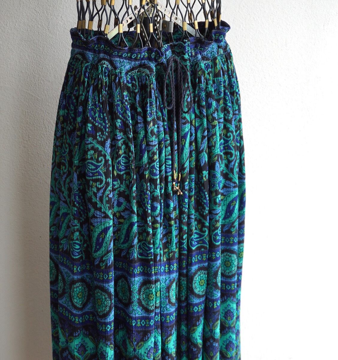 配色良いエスニックペイズリー柄の、ロングギャザースカート。