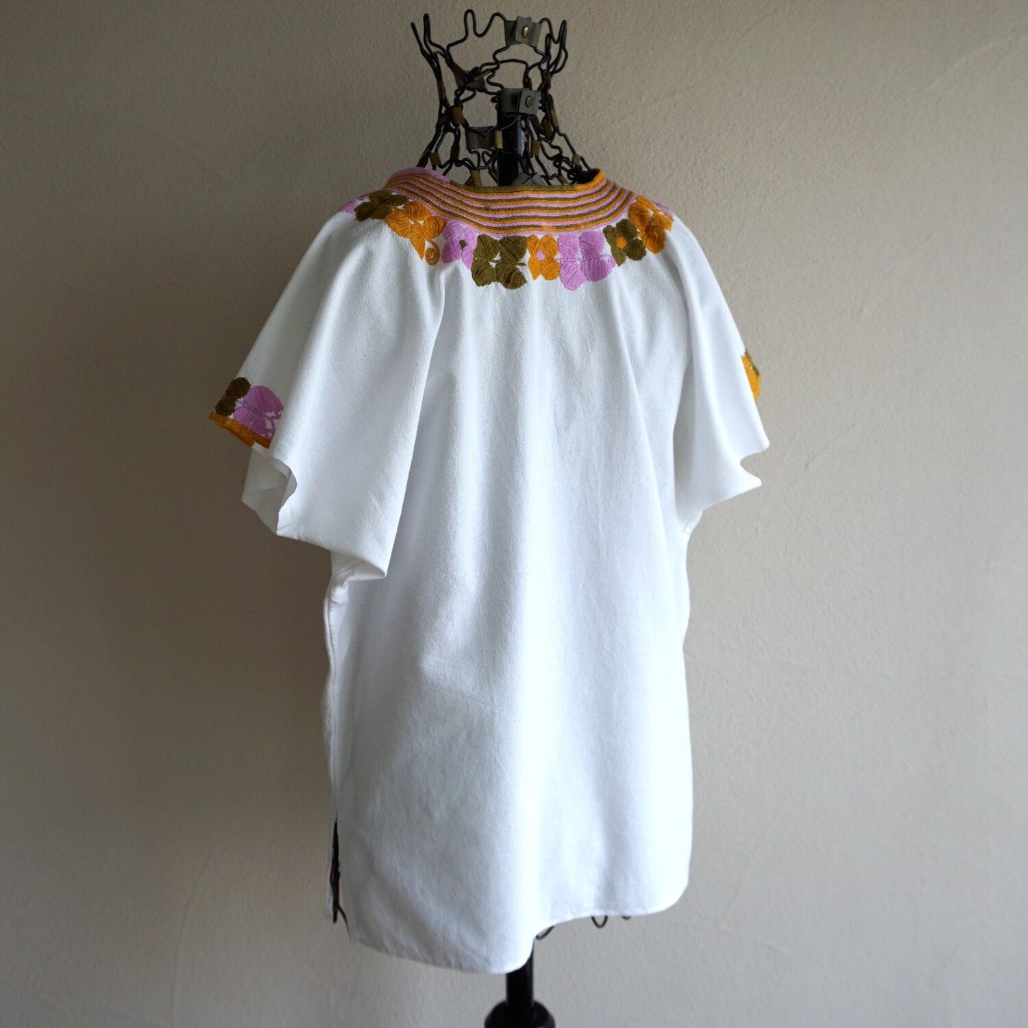 1970’s ヴィンテージチュニック フレンチスリーブ 手刺繍 ホワイト 実寸(women's M程度) 民族 フォークロア