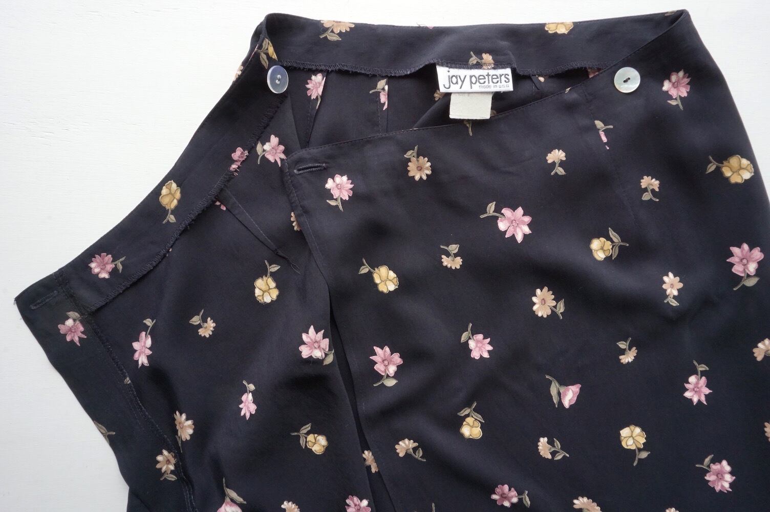 1980’s〜90’s USA製 [jay peters] フローラルパターン 100%レーヨン ラップタイトロングスカート ブラック 表記(US 8) 花柄 ヴィンテージ