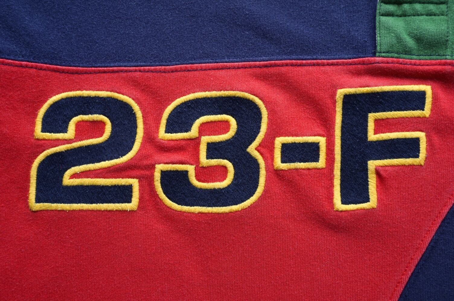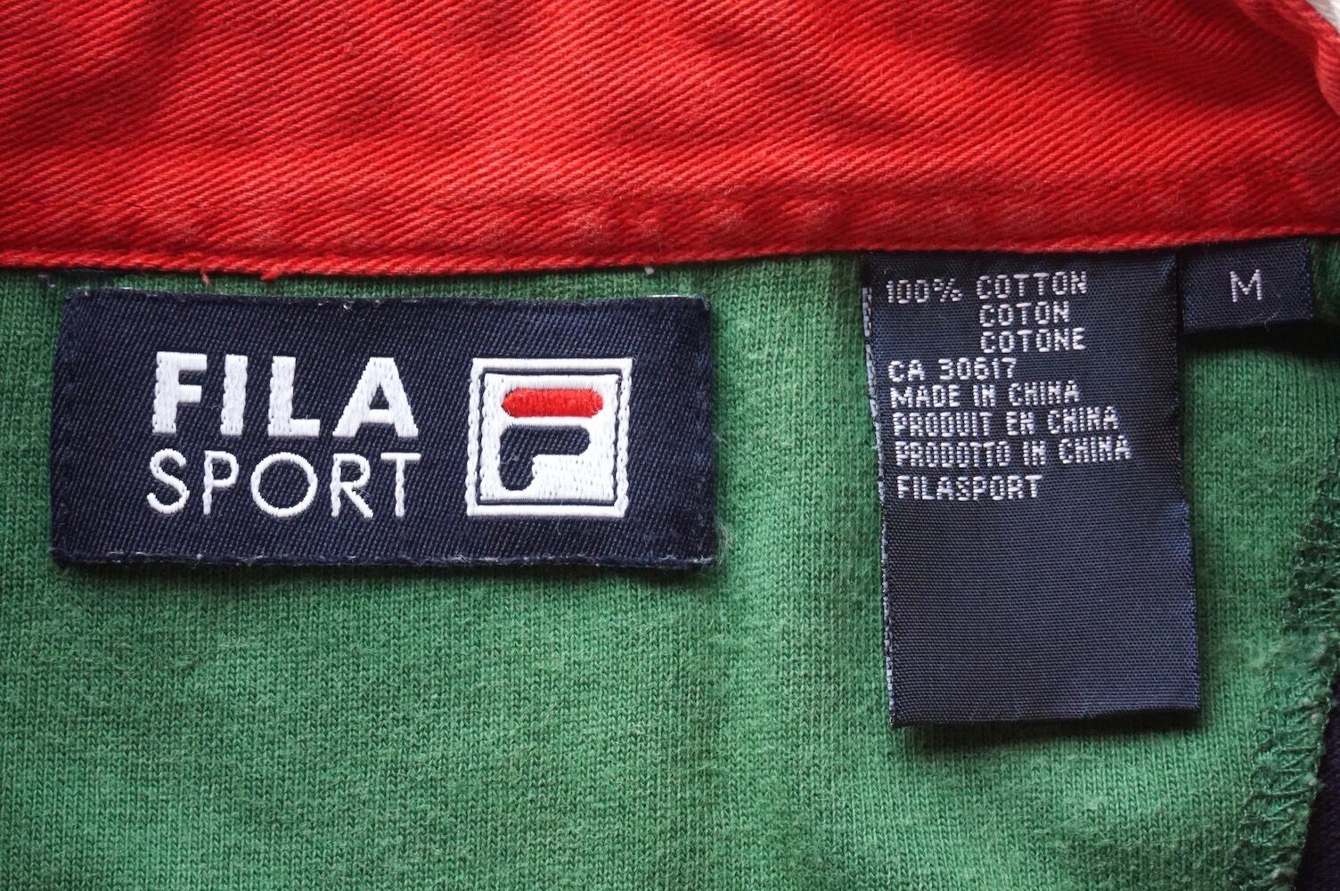 1990’s [FILA] "FILA SPORT" マルチカラー切り替え L/S ラガーシャツ ネイビー×グリーン×レッド 表記(M) ヴィンテージ オールド フィラ
