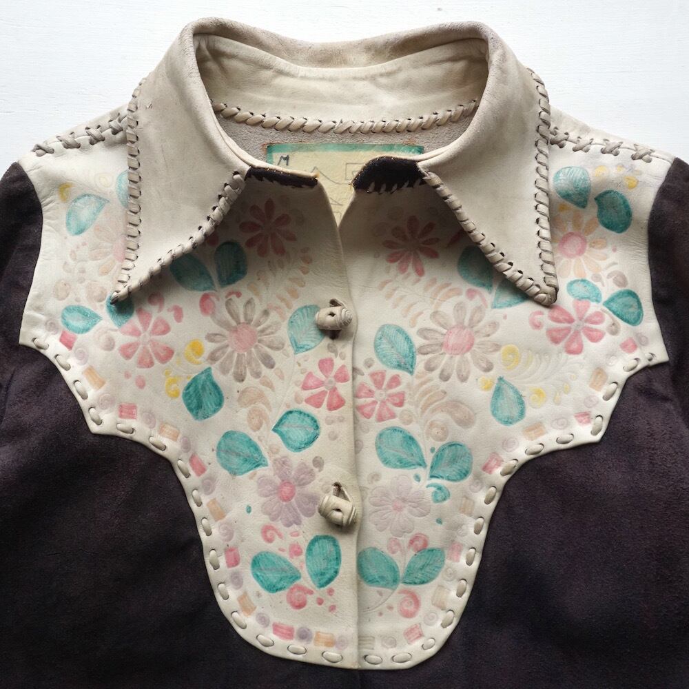 1970’s MEXICO製 [Char] ハンドペイント クラフトレザー シャツジャケット ダークブラウン 表記(women's M) チャー ヒッピー ヴィンテージ | MAGNOLIA WEBSTORE