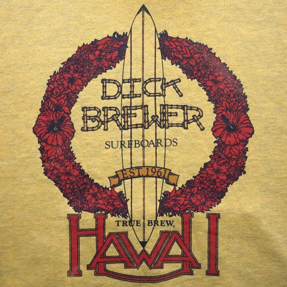 1980’s〜90’s USA製 [Dick Brewer Surfboards] スウェットパーカ 裏起毛 杢イエロー 表記(LARGE) ディックブリューワー オールドサーフ ヴィンテージ