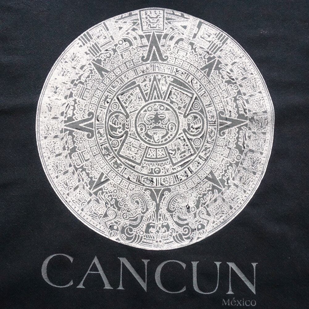 1990’s MEXICO CANCUN アステカカレンダー 太陽の石 スーベニアコットンパーカ ブラック 表記(L) メキシコ カンクン オーパーツ