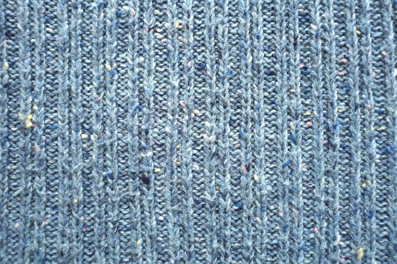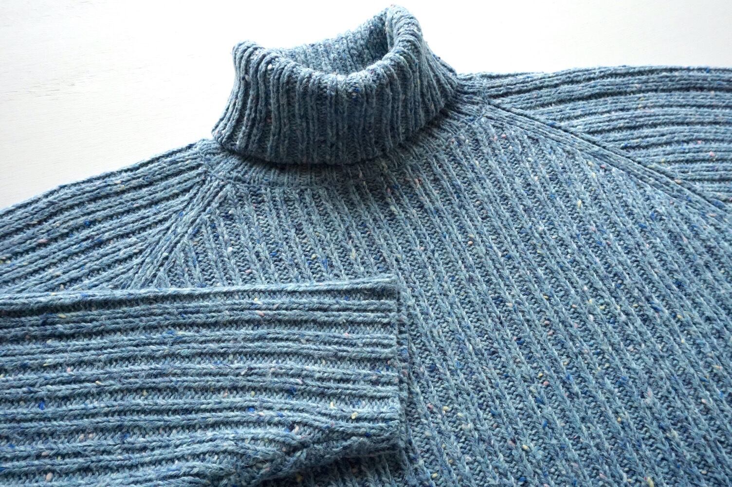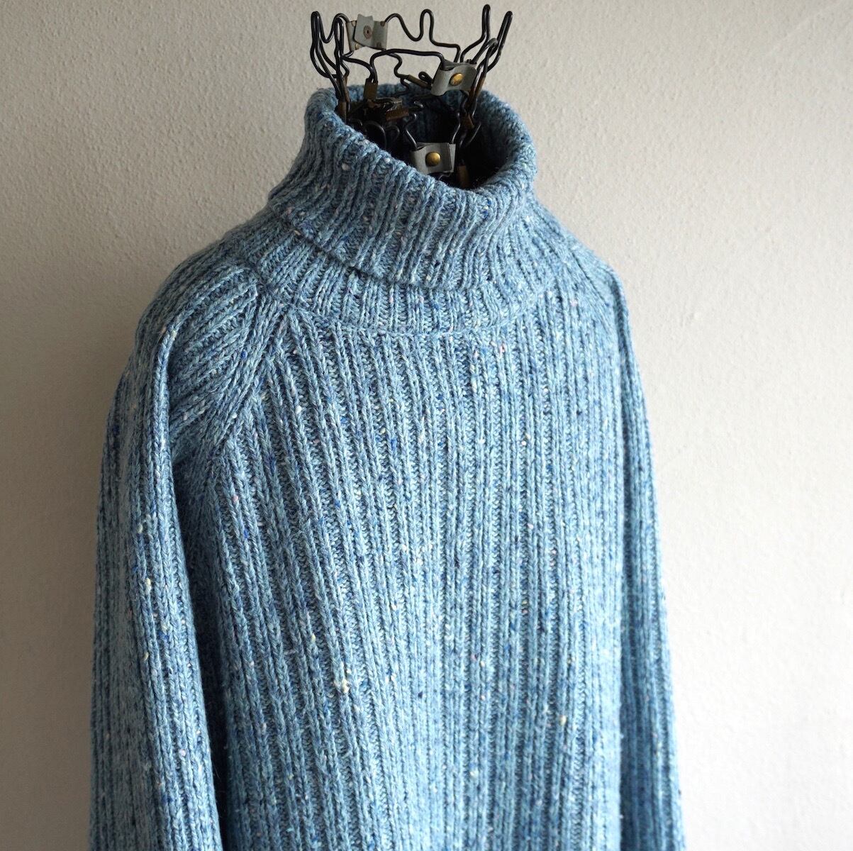 ネップ感が風合いの良い、北欧らしい綺麗なミックスブルーのタートルネックニットセーター。