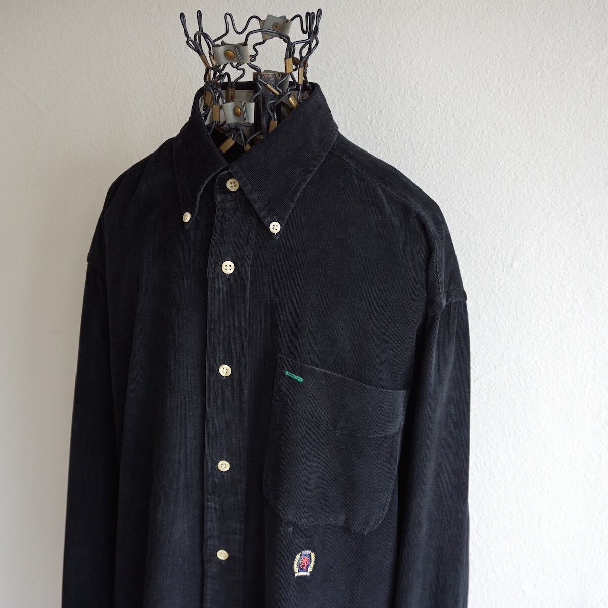 1990’s [TOMMY HILFIGER] コーデュロイ L/S ボタンダウン シャツ ブラック 実寸(M程度) オールド トミーヒルフィガー