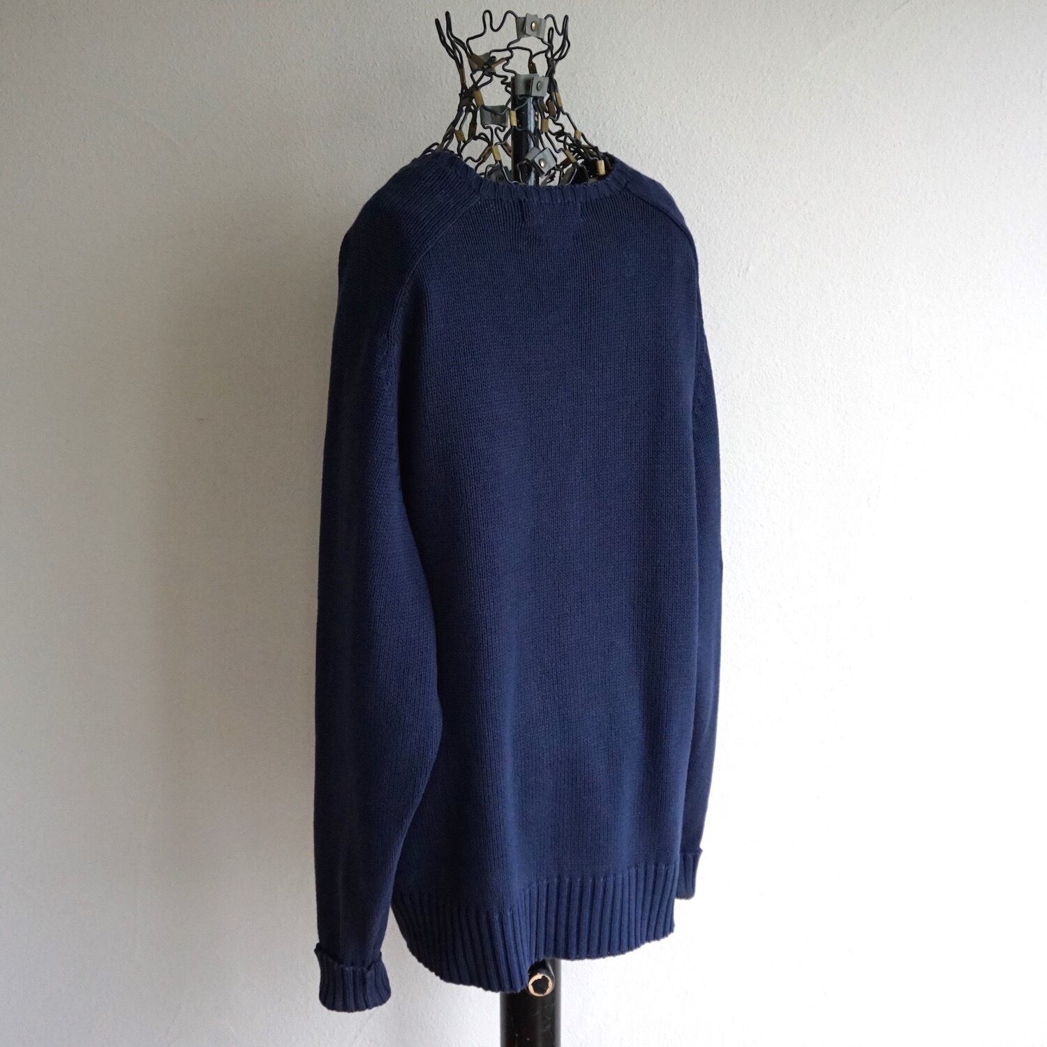 1990’s [Ralph Lauren] サドルショルダースリーブ クルーネック 100%コットン ミドルゲージ ニットセーター ネイビー 表記(L) ラルフローレン