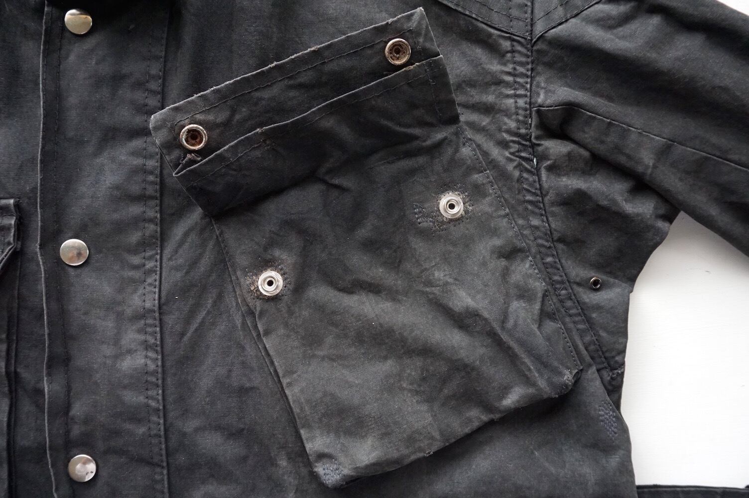 1970’s INTERNATIONAL SUIT型 ワックスコットン モーターサイクルジャケット ブラック 実寸(38程度) オイルド インターナショナル ヴィンテージ