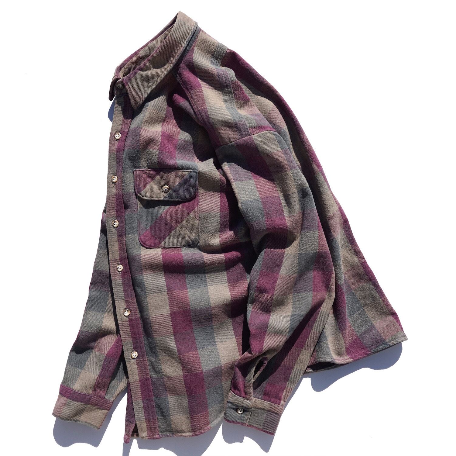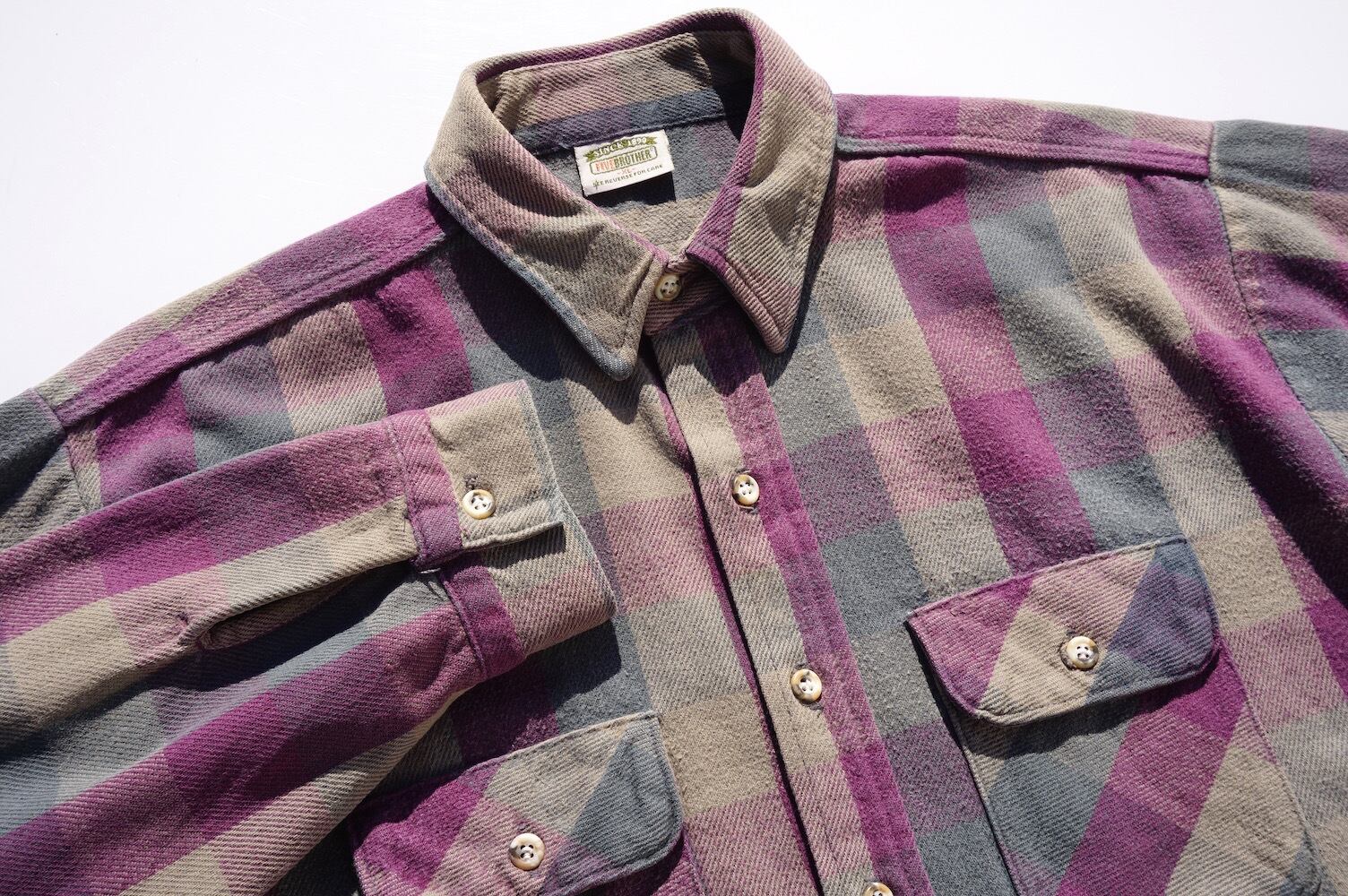 1990’s USA製 [FIVE BROTHER] ヘヴィーネルシャツ ブロックチェック パープル×グレー×ベージュ 表記(XL) ファイブブラザー ヴィンテージ