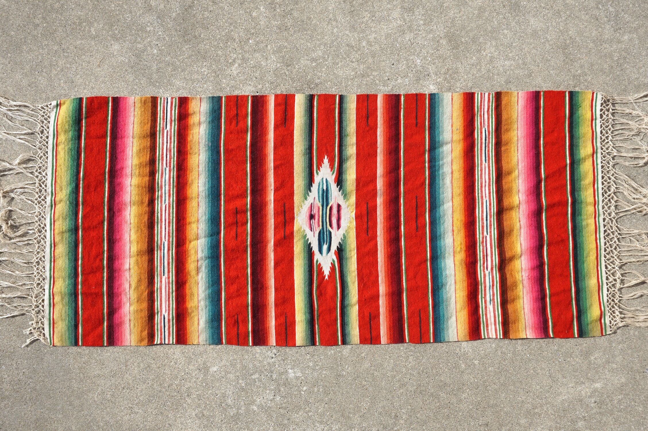 カラーリングの良いネイティヴパターンの、ヴィンテージメキシカンラグ(サラペ)。