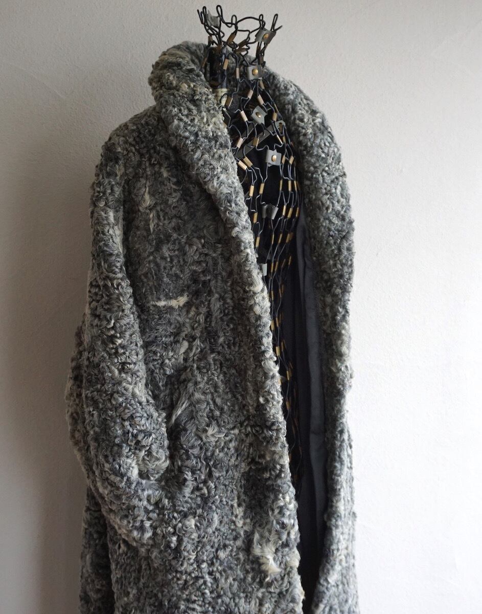 シルバーグレーのカールした毛足が可愛い、リアルファーコート。