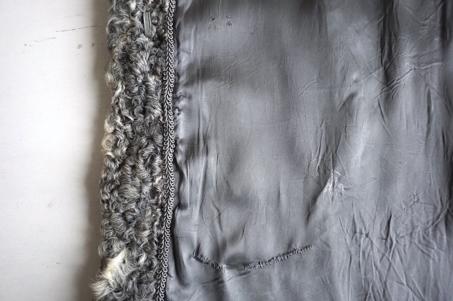 1970’s リアルファー ショールカラー ロングコート シルバーグレー 実寸(women's M程度) ラム系 カール 毛皮 ヴィンテージ