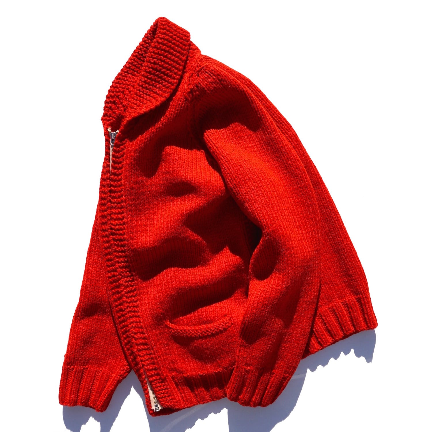 1960’s カウチンセーター "LIGHTNING"ジッパー ショールカラー ラグランスリーブ ソリッド レッド 実寸(S〜M程度) ヴィンテージ