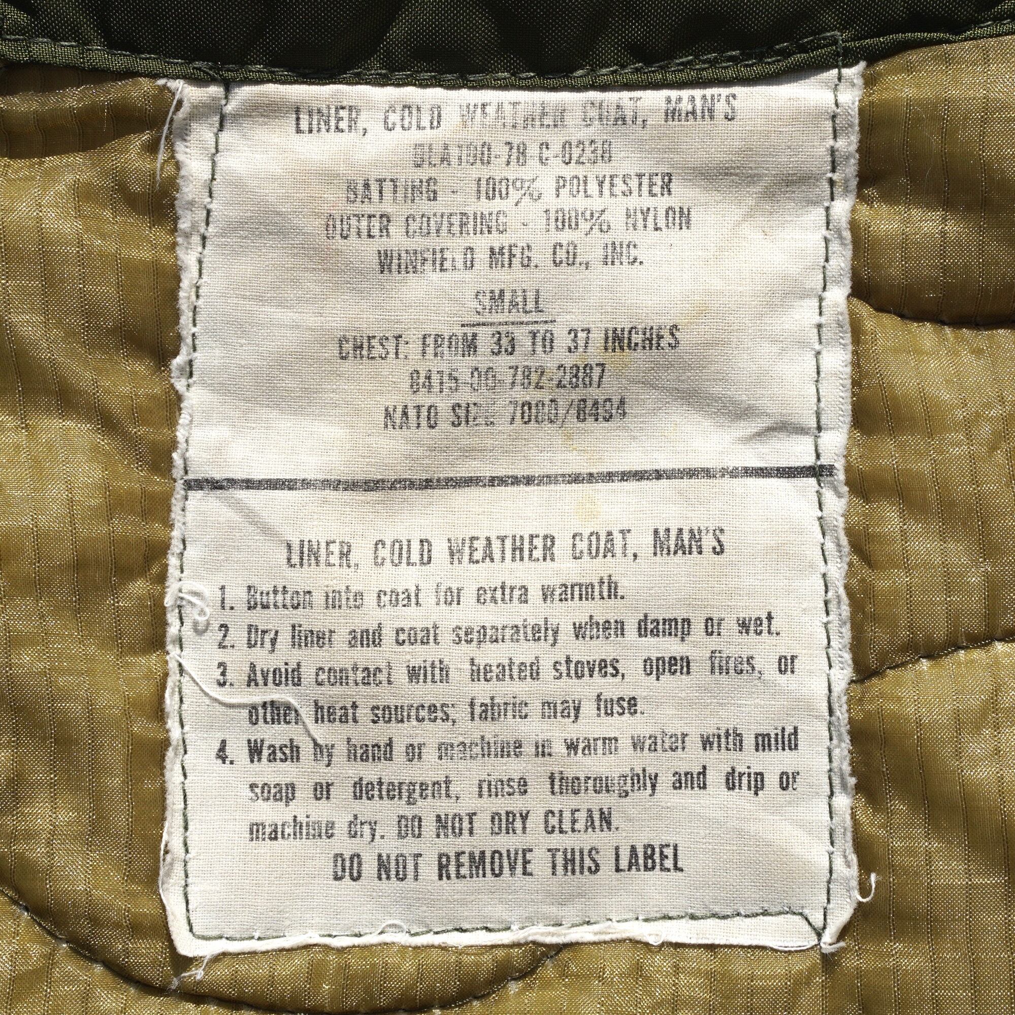 1978年製U.S.ARMY実物、"M-65"フィールドジャケット用キルティングライナー。