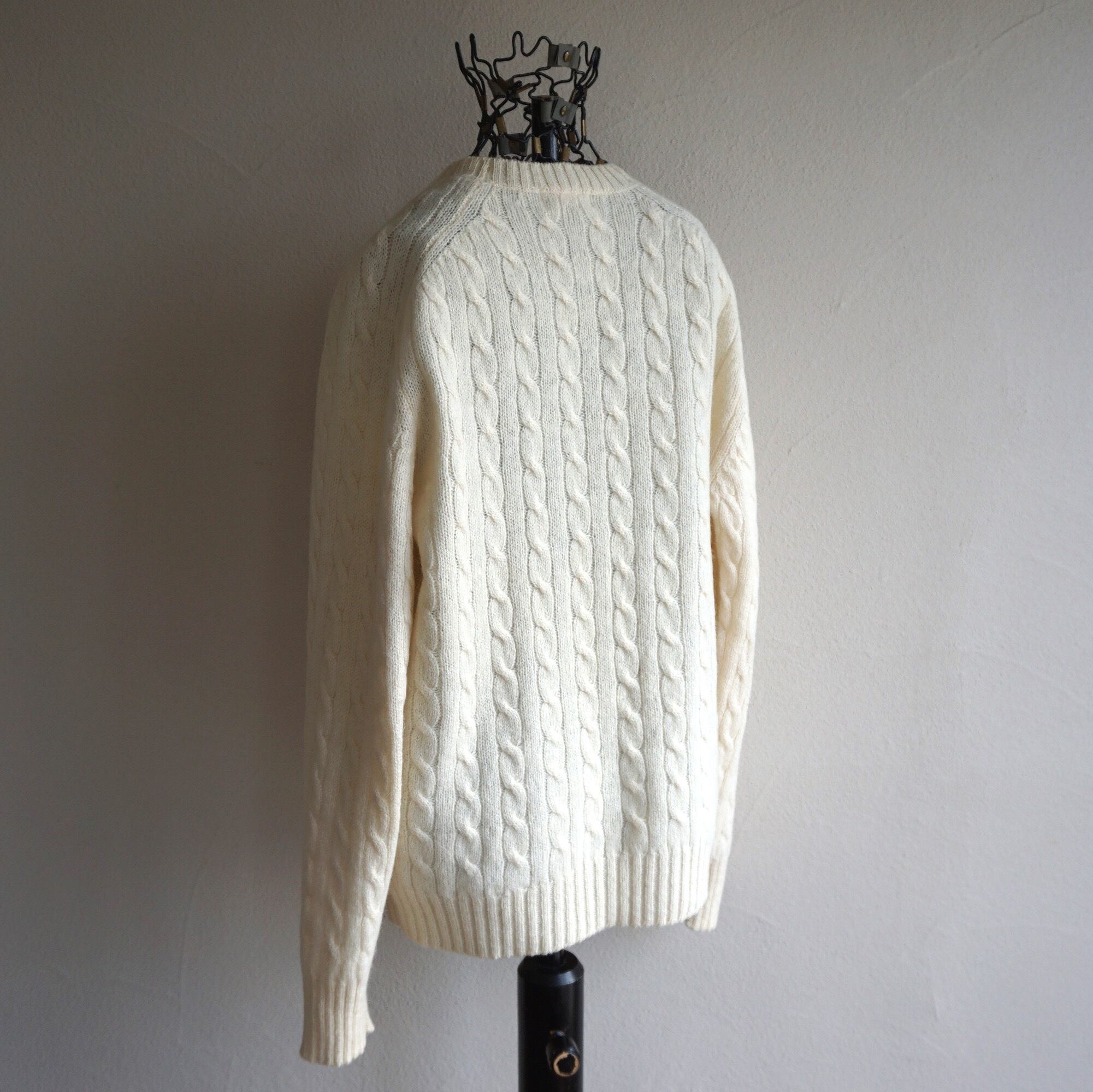 1980’s [BRAEMAR] ケーブルニットセーター サドルショルダースリーブ クルーネック アイボリー 表記(L) ヴィンテージ