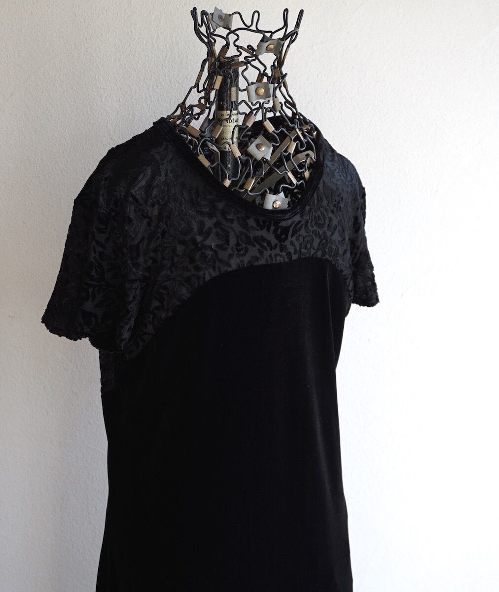 2000’s〜 USA製 [My Michelle] バーンアウト加工 マキシレングス S/S ベロアドレス ストレッチ ブラック 表記(9/10) シアー シースルー | MAGNOLIA WEBSTORE